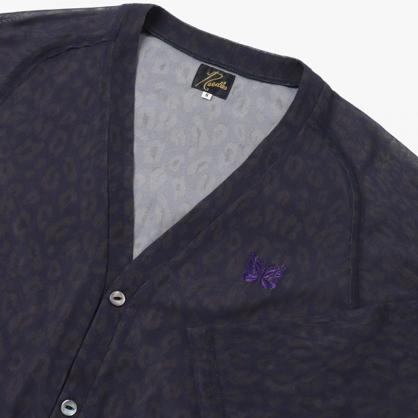 薄手のポリエステルメッシュ素材で制作されたVネックカーディガン。