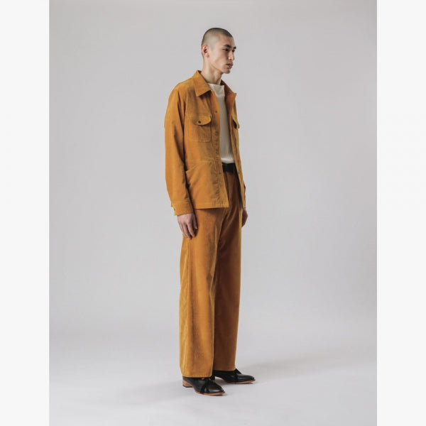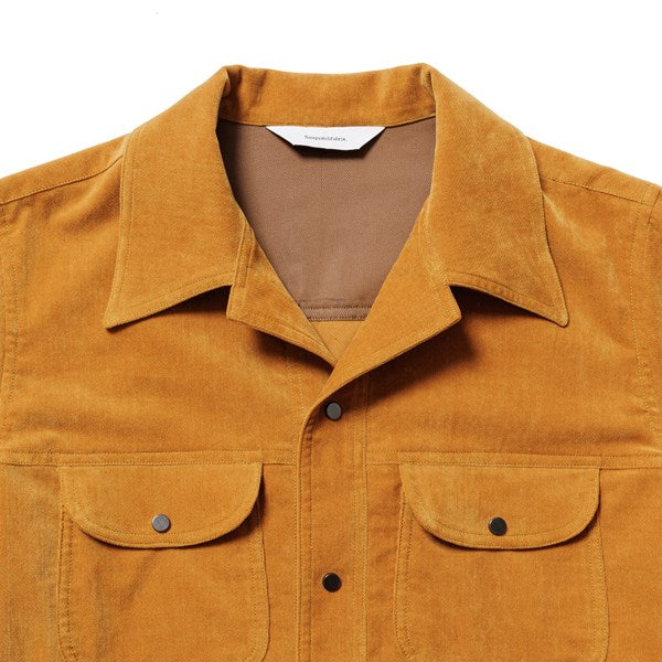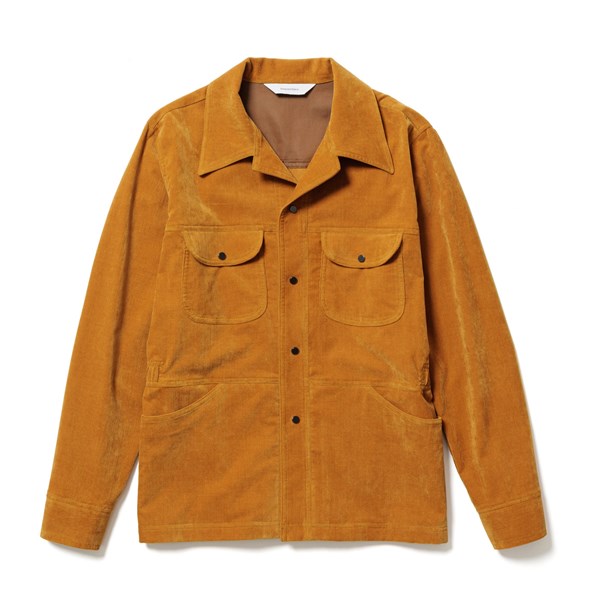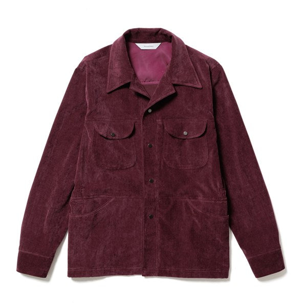 色目に深みを持たしたストレッチ性の高い別珍生地ブッシュシャツジャケット。