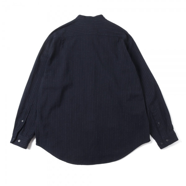 BAND COLLAR SHIRT WOOL SILK STRIPE