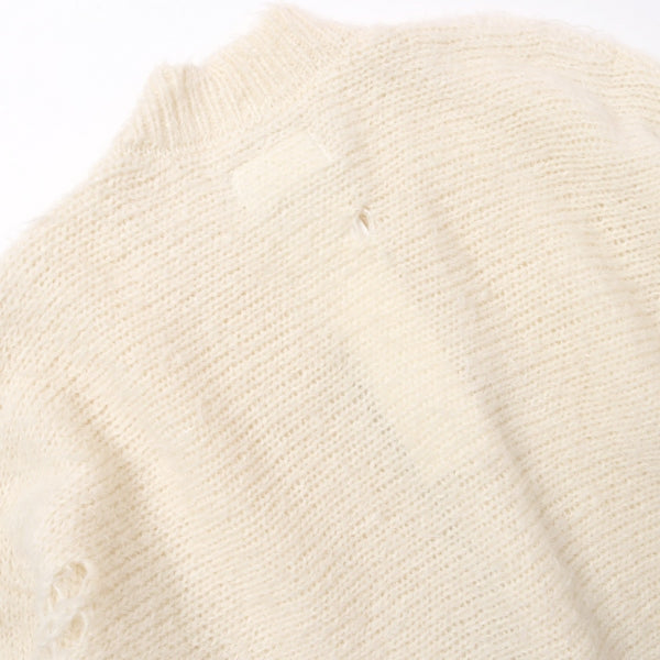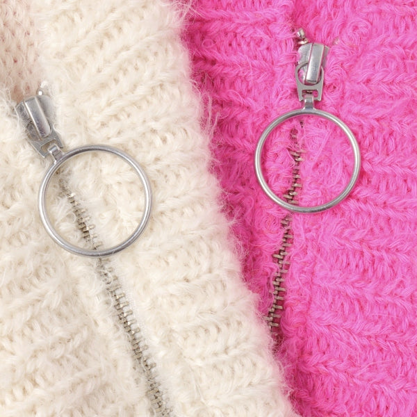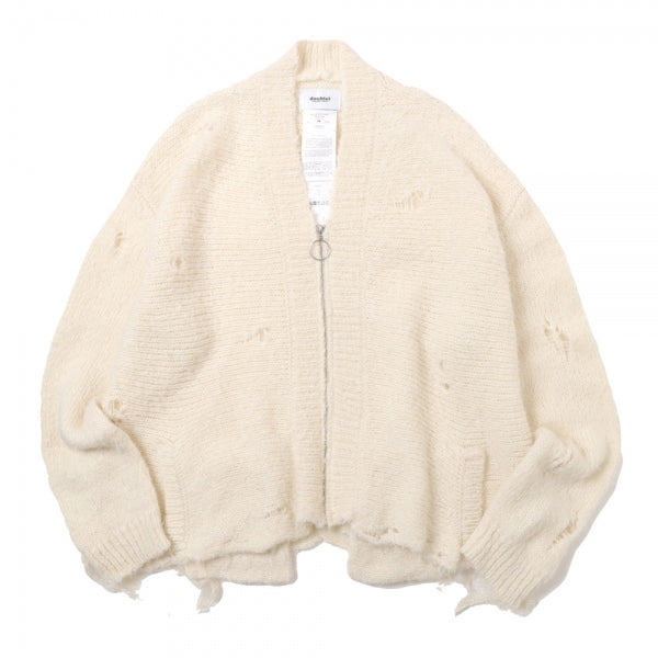 コットンを芯にしながらウールの糸をループを作りながら編み、そのループの先端を粗くカットすることにより糸がランダムに飛び出すヴィンテージ感のあるオリジナル糸を使用して編んだZIPカーディガン。