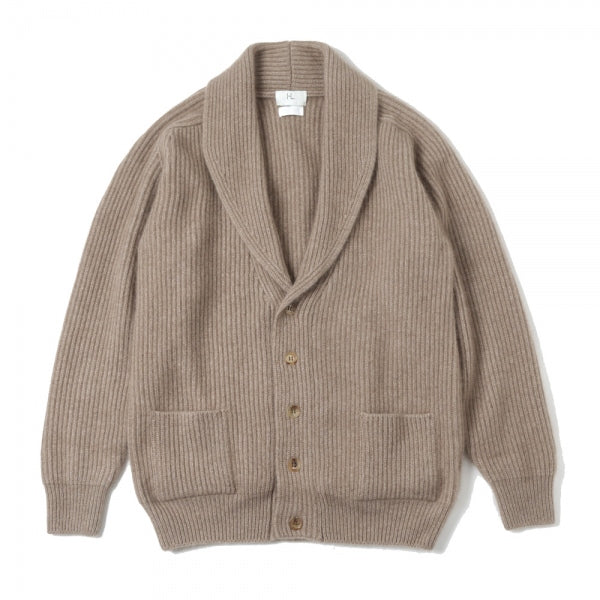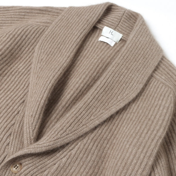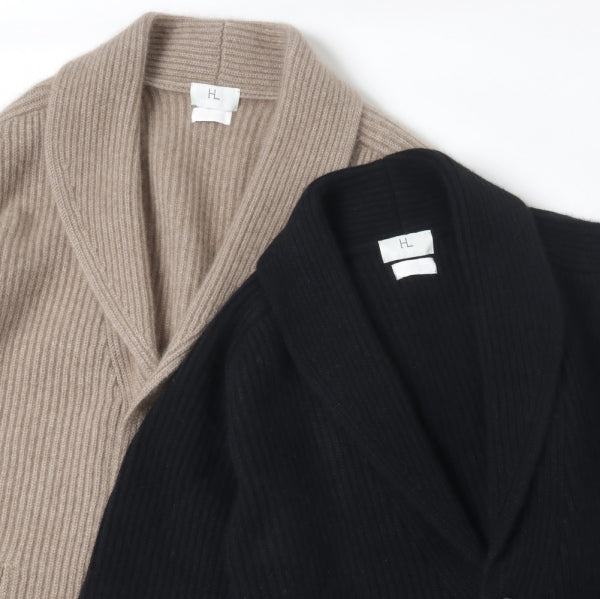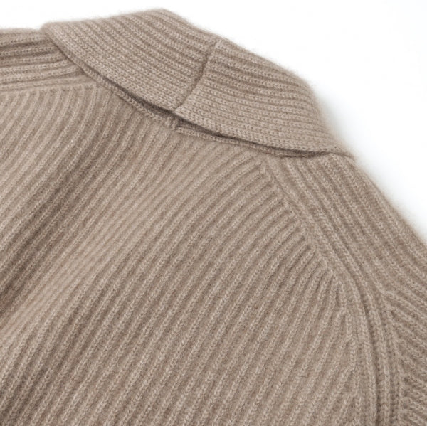カシミアを贅沢に使用したリブ編のショールカーディガン。