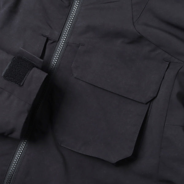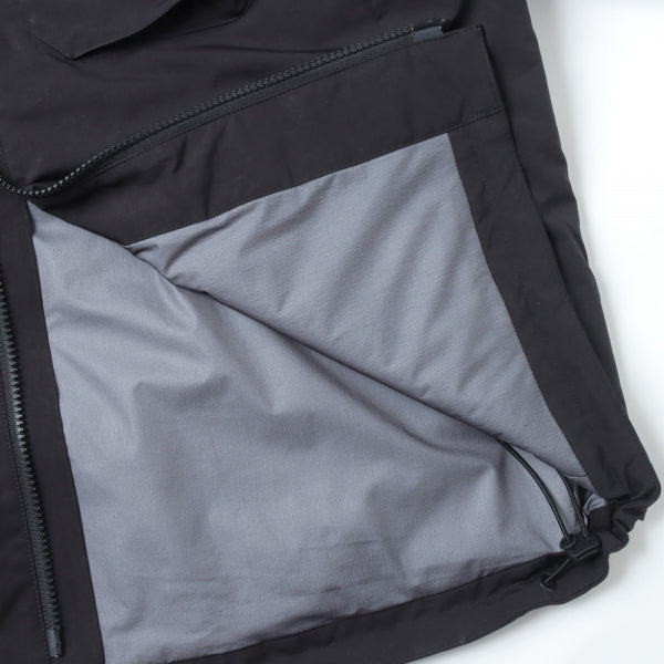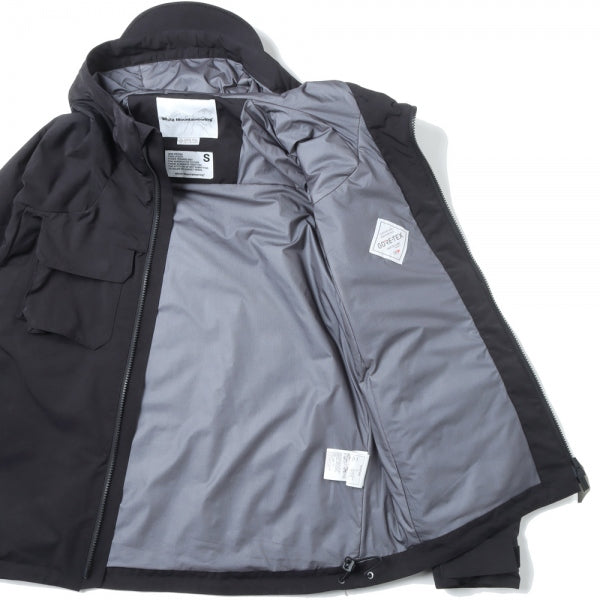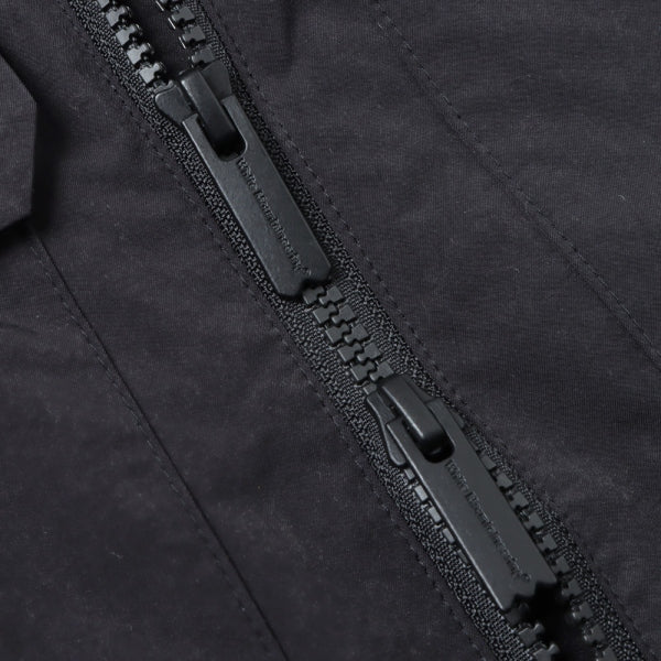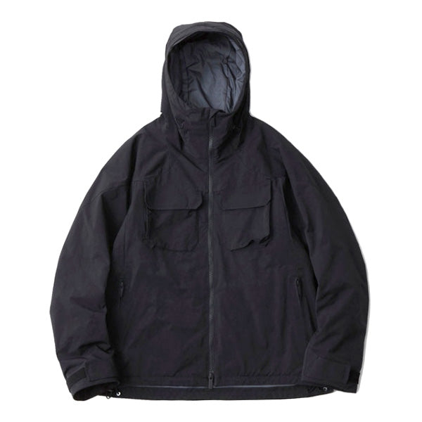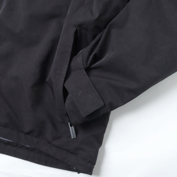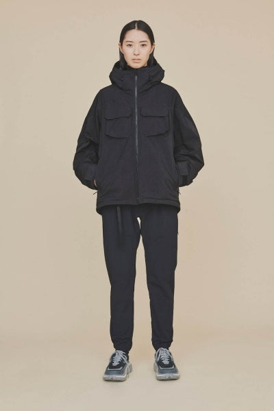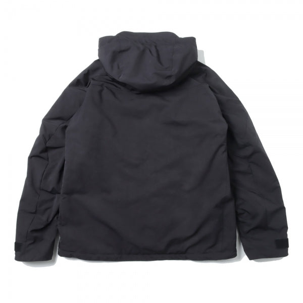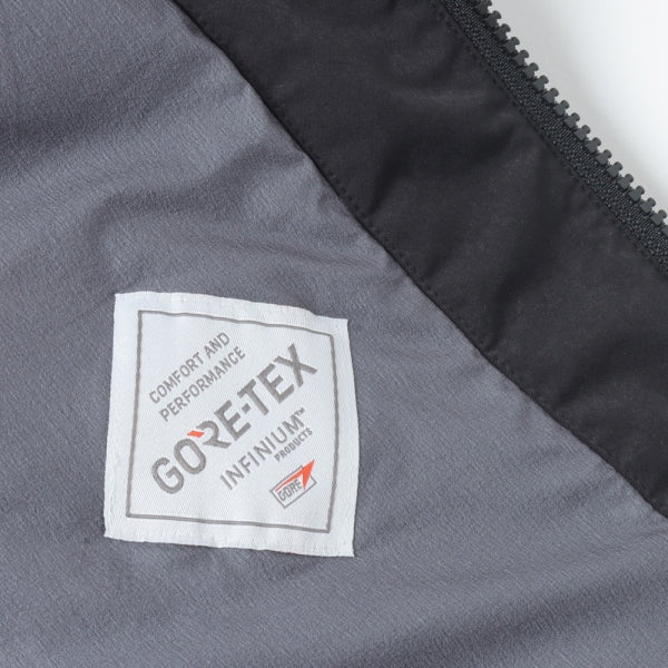 切替やディティールをなるべく削ぎ落としシンプルにまとめた中綿入りフードパーカ。裏地にはGORE-TEX INFINIUMを使用しており、暖かくて軽い着心地が魅力。ポリエステル/ナイロンの割線糸を使用し特殊加工で極限まで密度を高めて仕上げをした、膨らみのあるスエードの様な独特なタッチが特徴のライトミリクロス素材を使用。