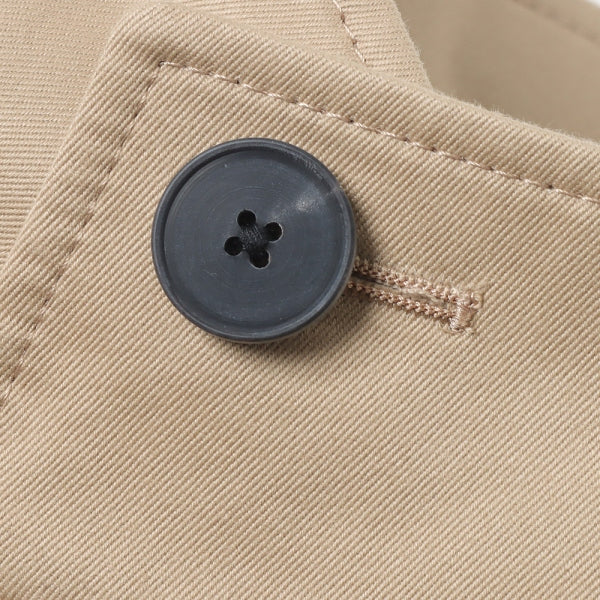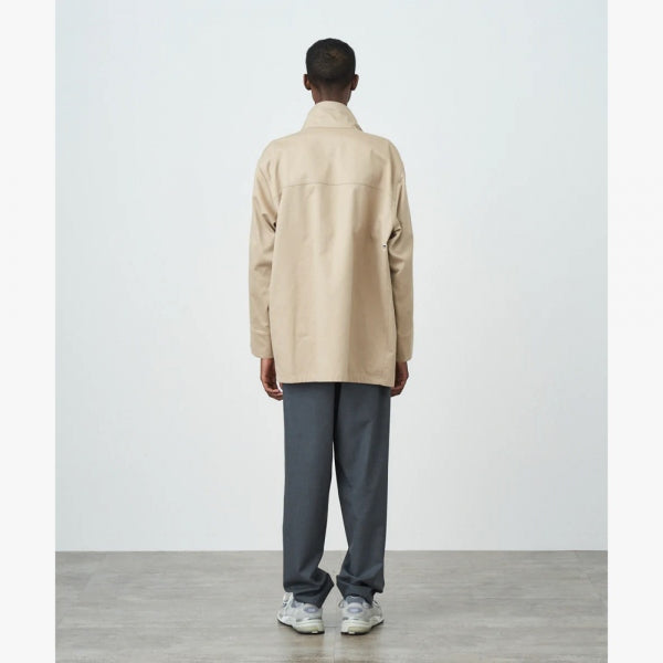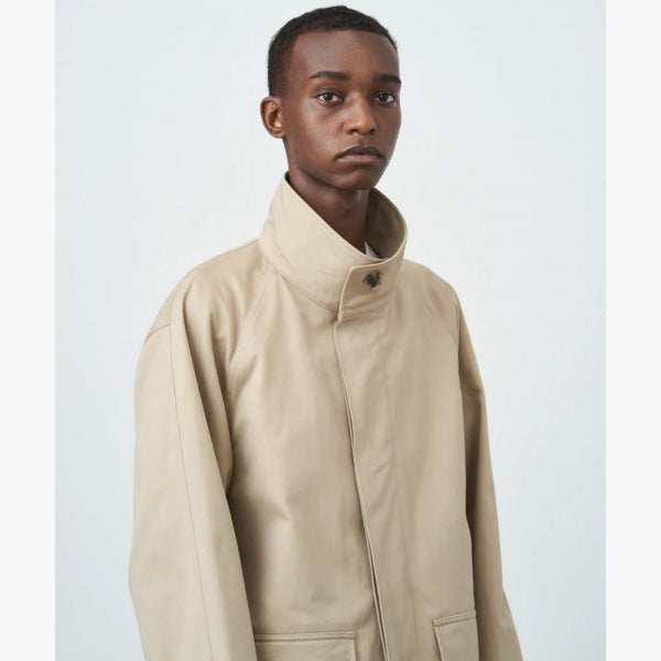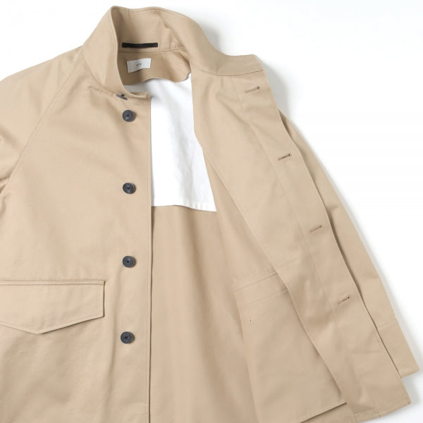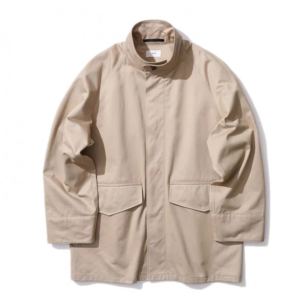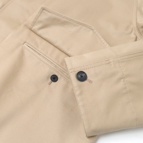 本比翼や水牛釦など、フィールドコートには見られないディテールを採用し、品格ある表情に仕上げた1着です。
