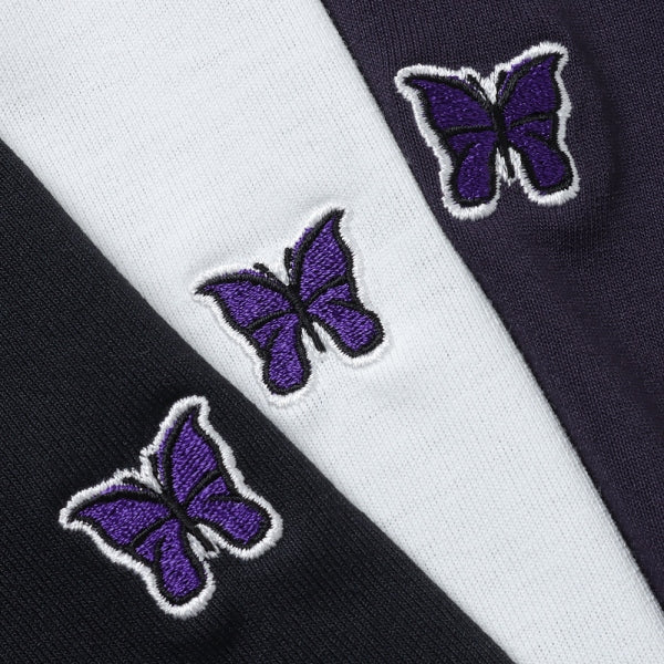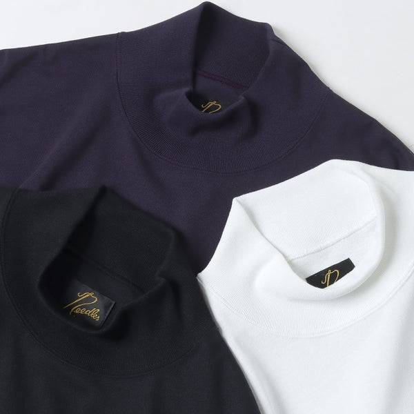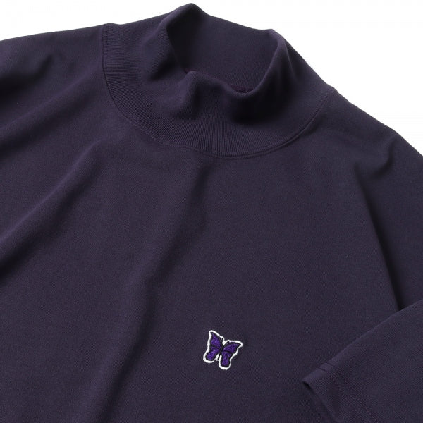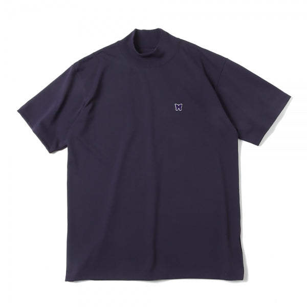 左胸に蝶のポイントが入ったネックデザインが特徴のモックネックTシャツ。
