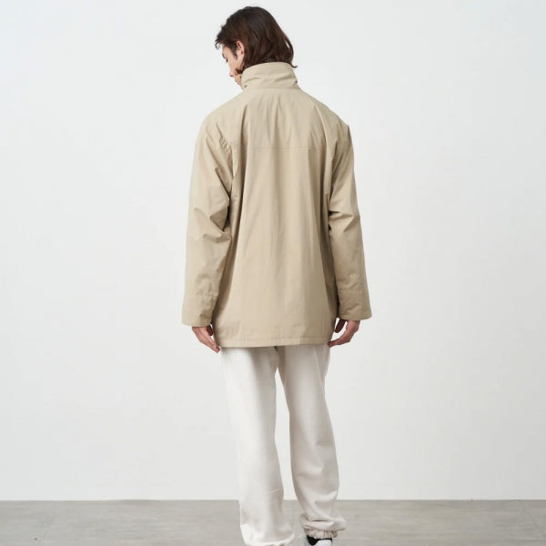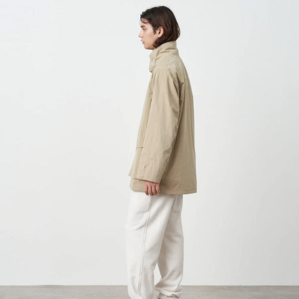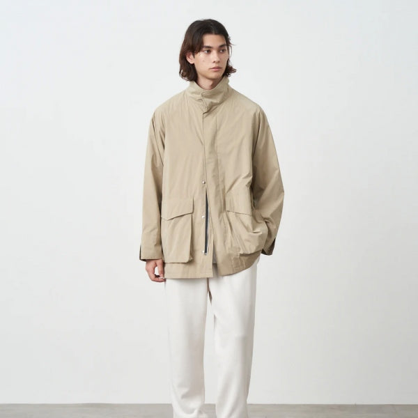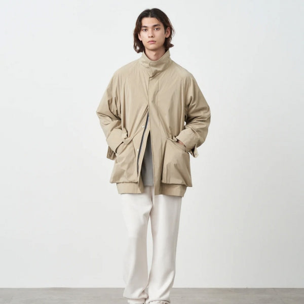 狩りなどに使用される古着のフィールドコートをベースに、スタンドカラーとして、仕上げたショートコート。素材が持つしなやかなドレープ性を殺さないように、洗いのかかった柔らかいコットン素材を使用した、総裏仕様で設計しました。撥水性も兼ね備えており、梅雨時期にも活躍します。