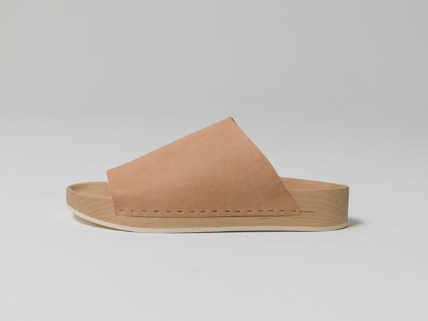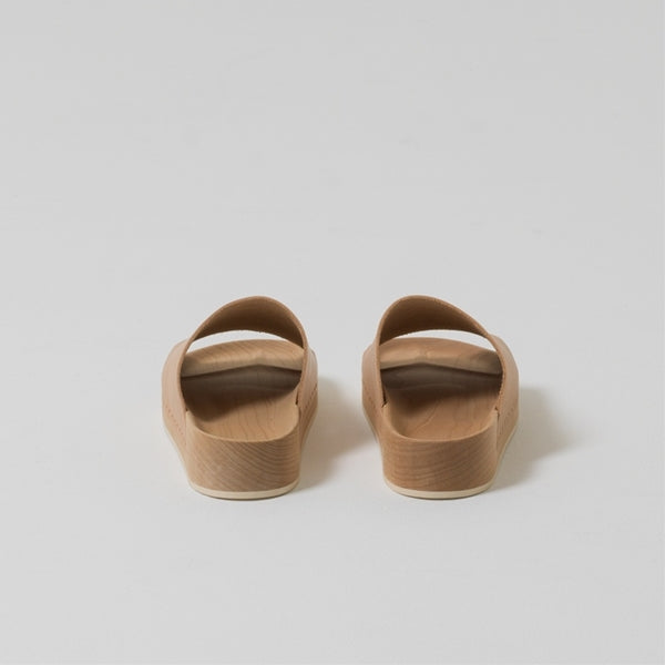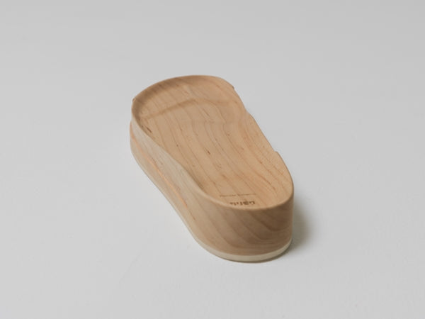 メープルの無垢材を三次元的な形状に加工したソールは今までにない履き心地と木という素材が持つ心地良さを肌で感じられます。