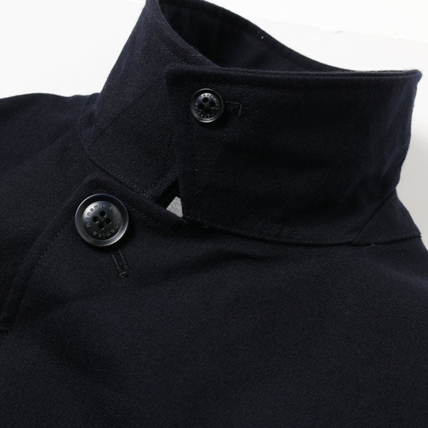 nanamicaのスタンダードアイテムでもあるGORE-TEXステンカラーコート。スタンダードタイプ(SUBF100)よりもややゆったりとしたサイズ感で着丈の長いタイプ。表地がウール素材のGORE-TEX FABRICSを使った上品な仕上がりです。Aラインのシルエットや比翼仕立てなど、ドレスアイテムとしてのディテールと、防水透湿というアウトドアの機能性をミックスしました。前身はセットイン、後身はラグランスリーブとなったスプリットラグランスリーブです。