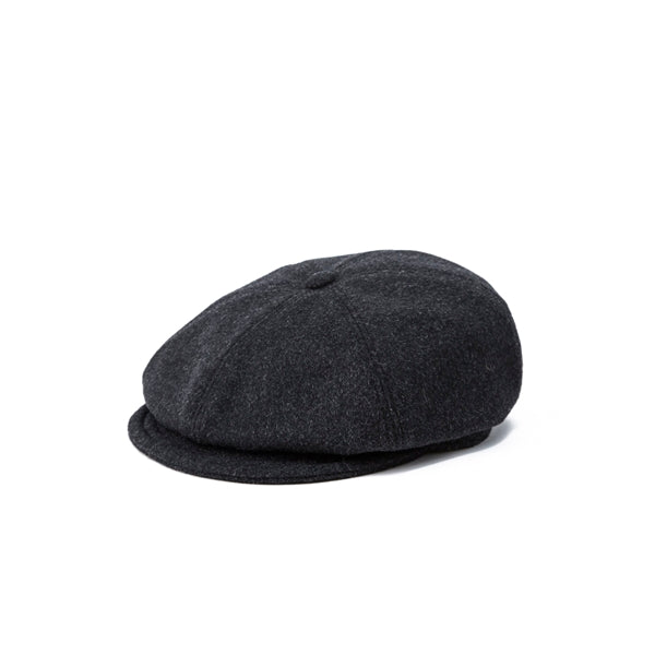 トップのボリュームを出しすぎないように再構築した6枚接ぎのキャップ。ゆとりのない丸いバックビューと少しだけゆとりをもたせたフロントビューが特徴的な定番的なキャスケット。ビンテージのキャスケットのようにコスチューミーになりすぎず、ワークキャップのようなカジュアルなフォルムをしているので、ツバをあげたり、前後逆にかぶったりと、自由に楽しんでもらいたい OLD JOEシグネチャーアイテム。今季はカシミアとウールをブレンドした糸で織ったビーバー仕上げのマテリアルを採用しています。