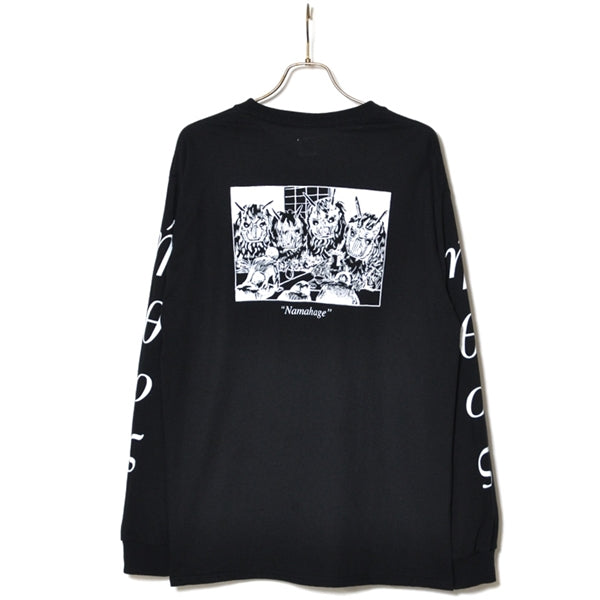 秋田県の伝統的な民族行事"なまはげ"の様子を描いたプリントロンTEE。袖にはギリシャ語でethosが入ります。