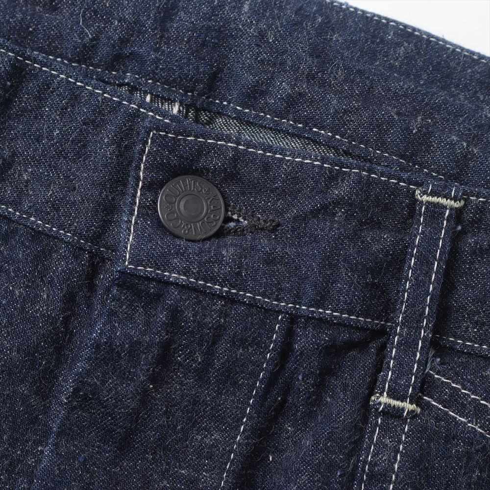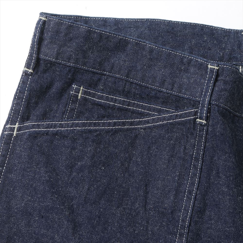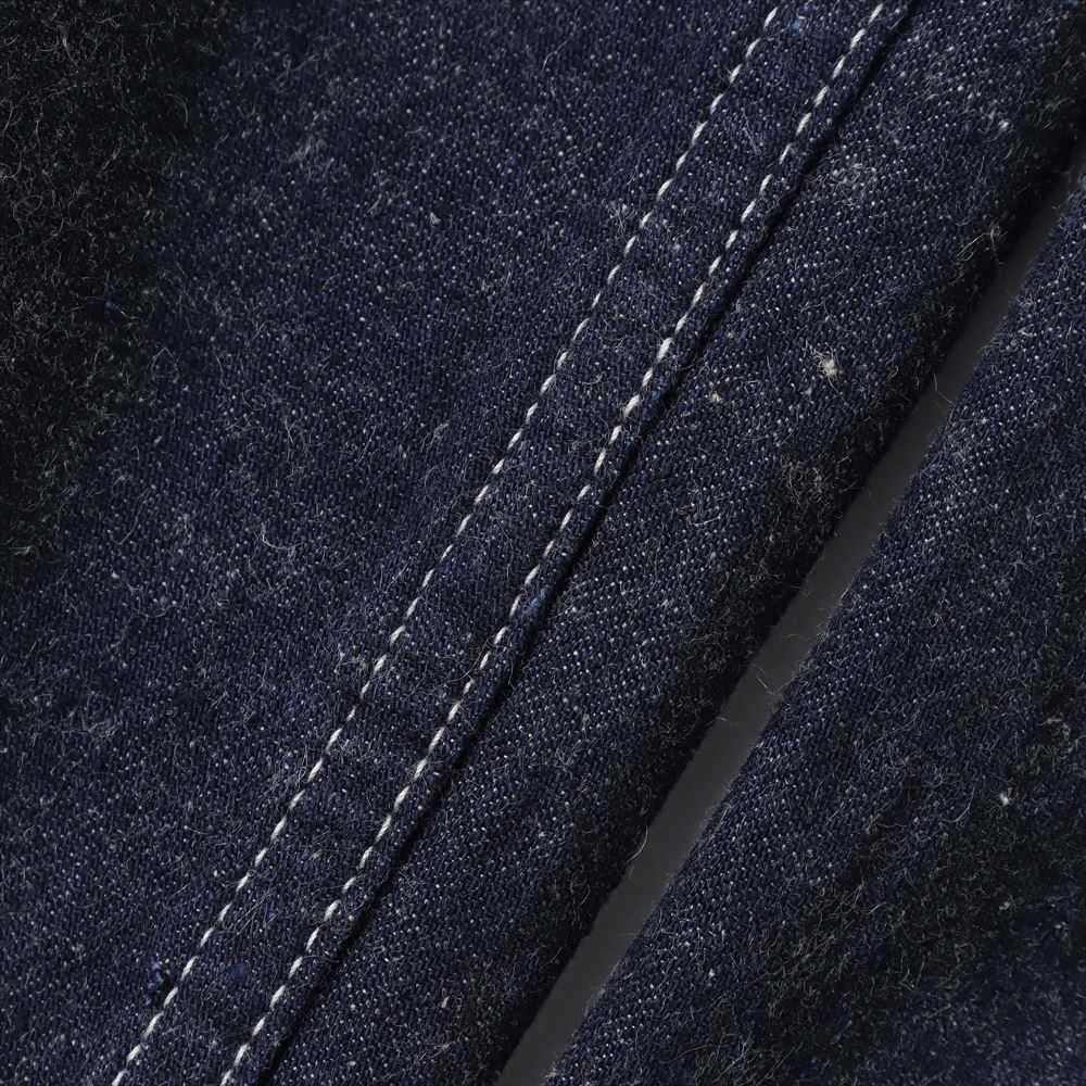 ヨコ糸にはリネンもブレンドした9ozセルビッチデニム。