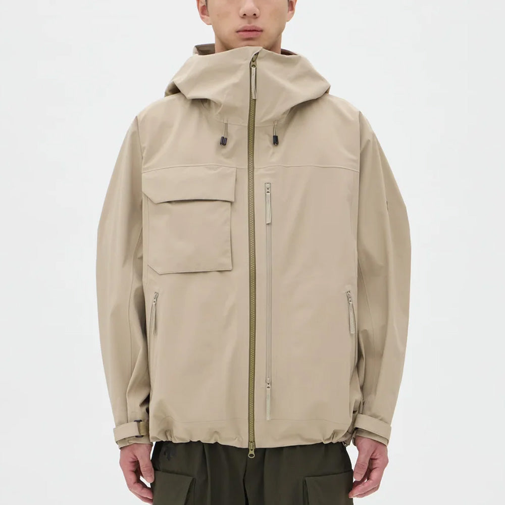 ややゆったりとしたシルエットで、アウトドアアクティビティにも普段着にも着用しやすい、高い収納力が特徴のシェルジャケット。