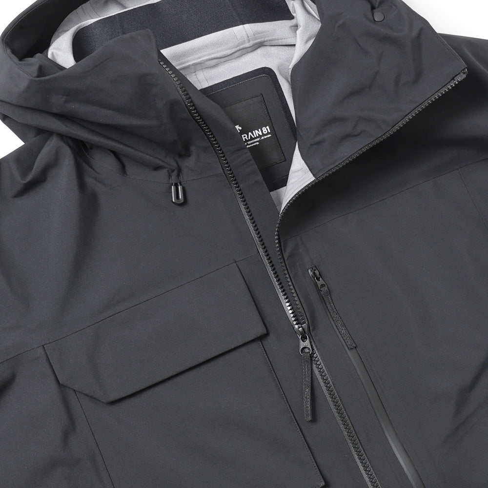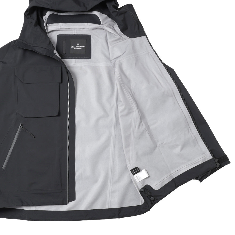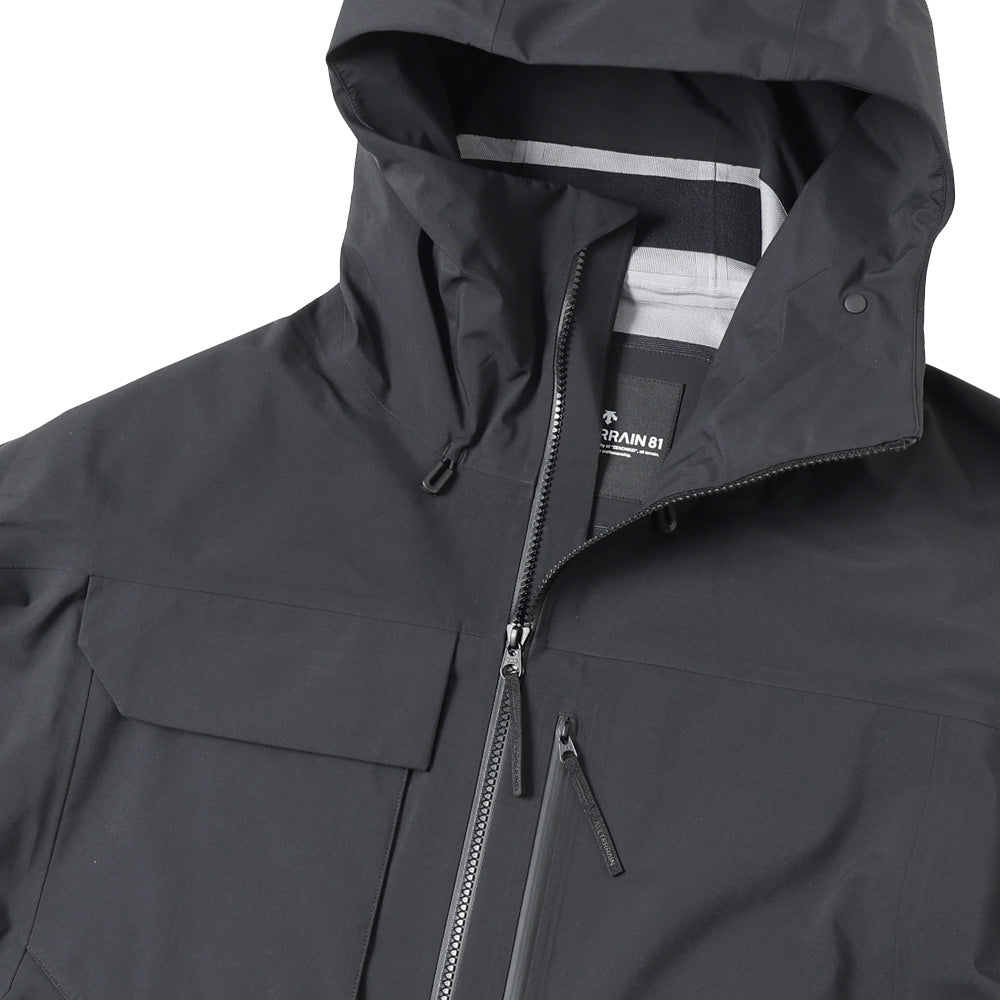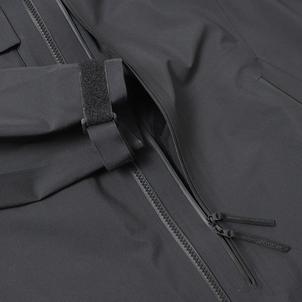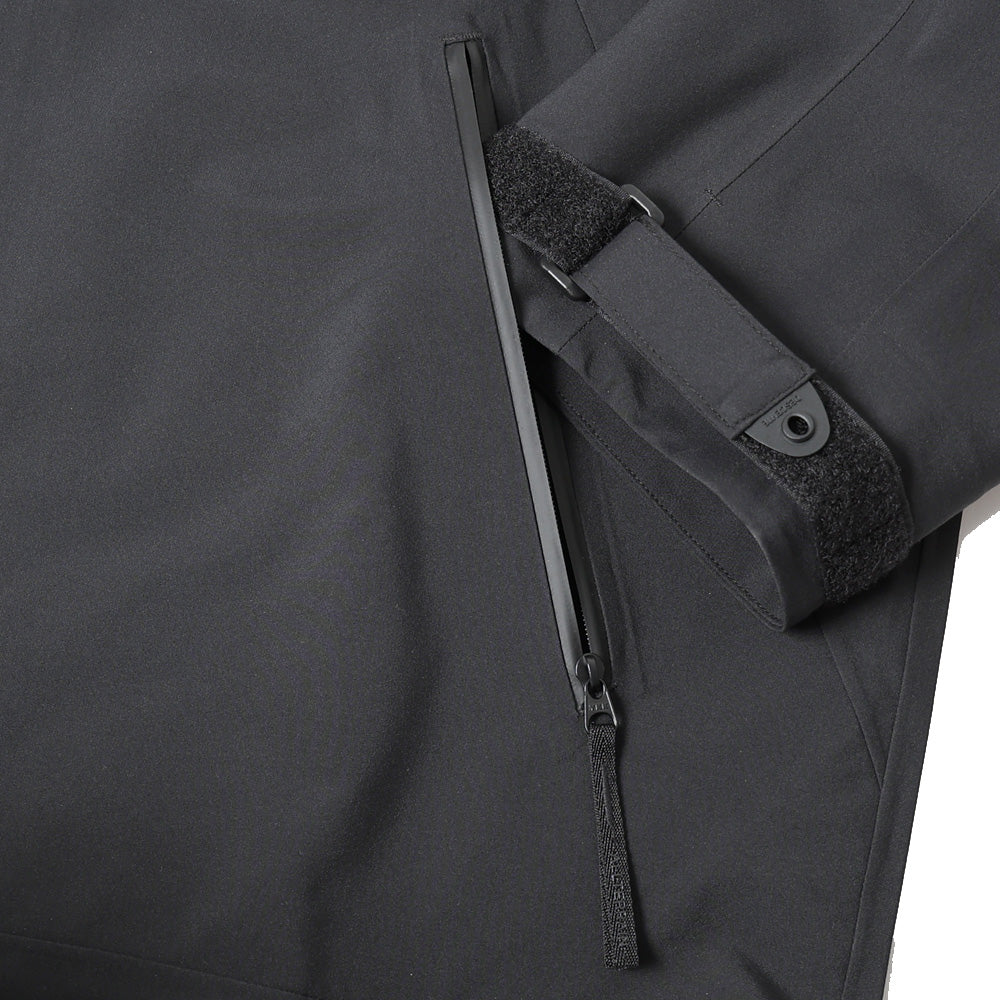 防水透湿性、防風性を持つ3レイヤー素材を採用したシェルジャケット。