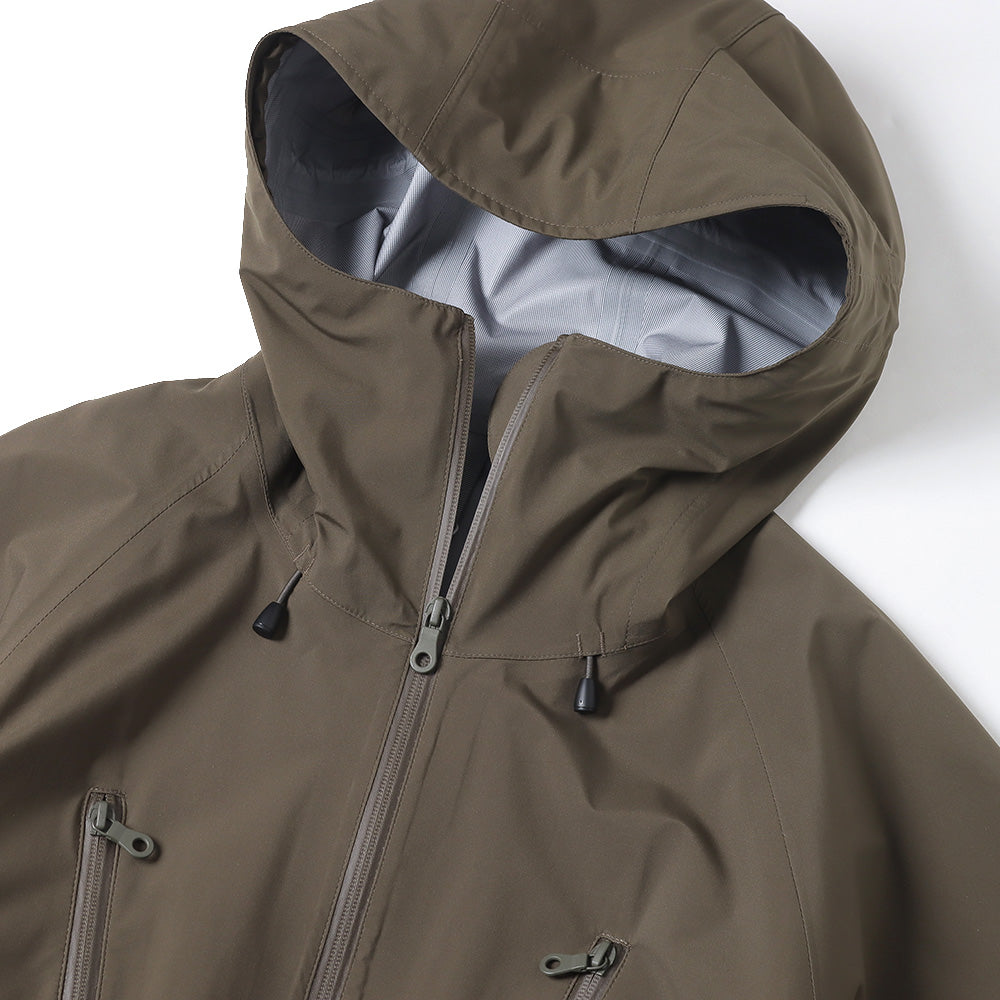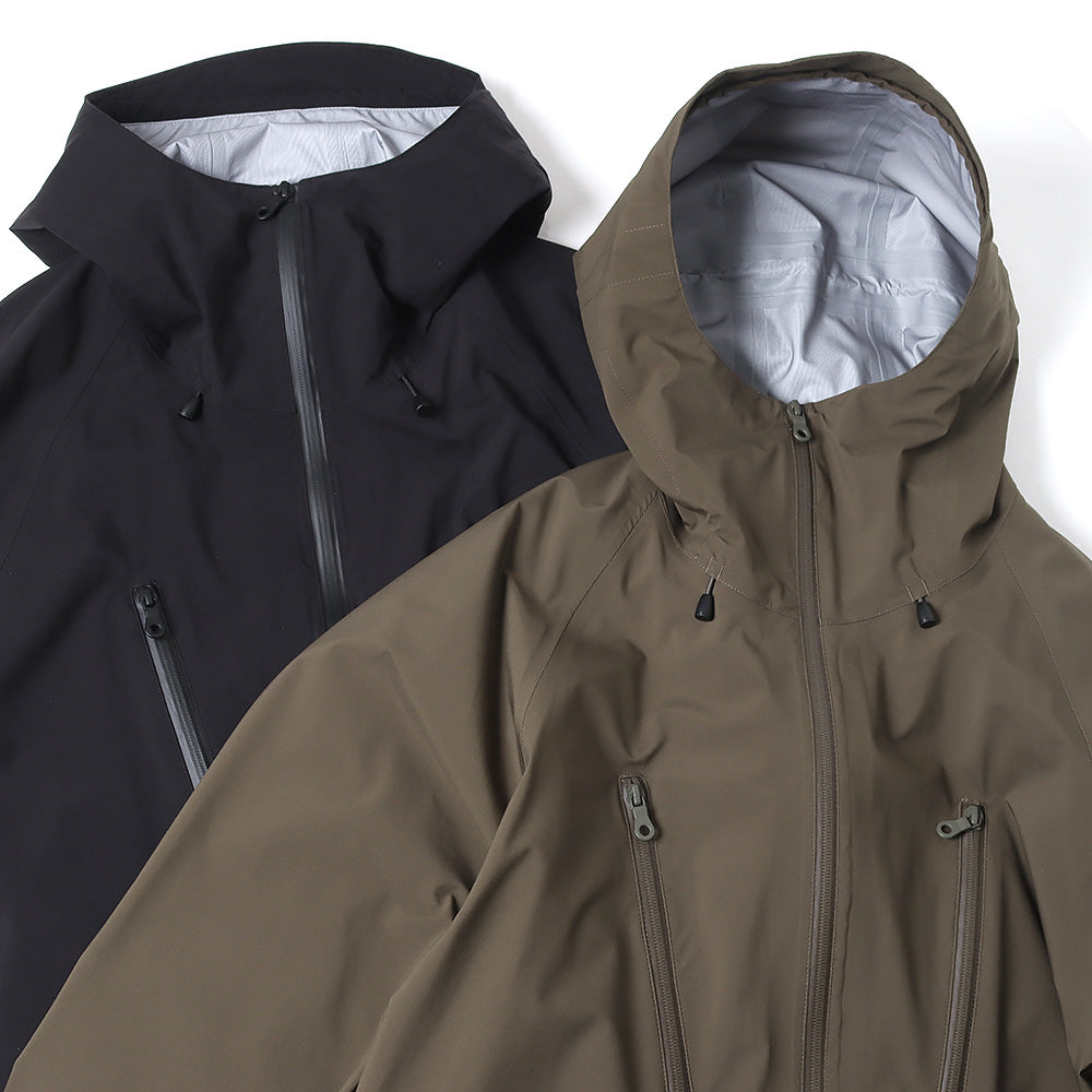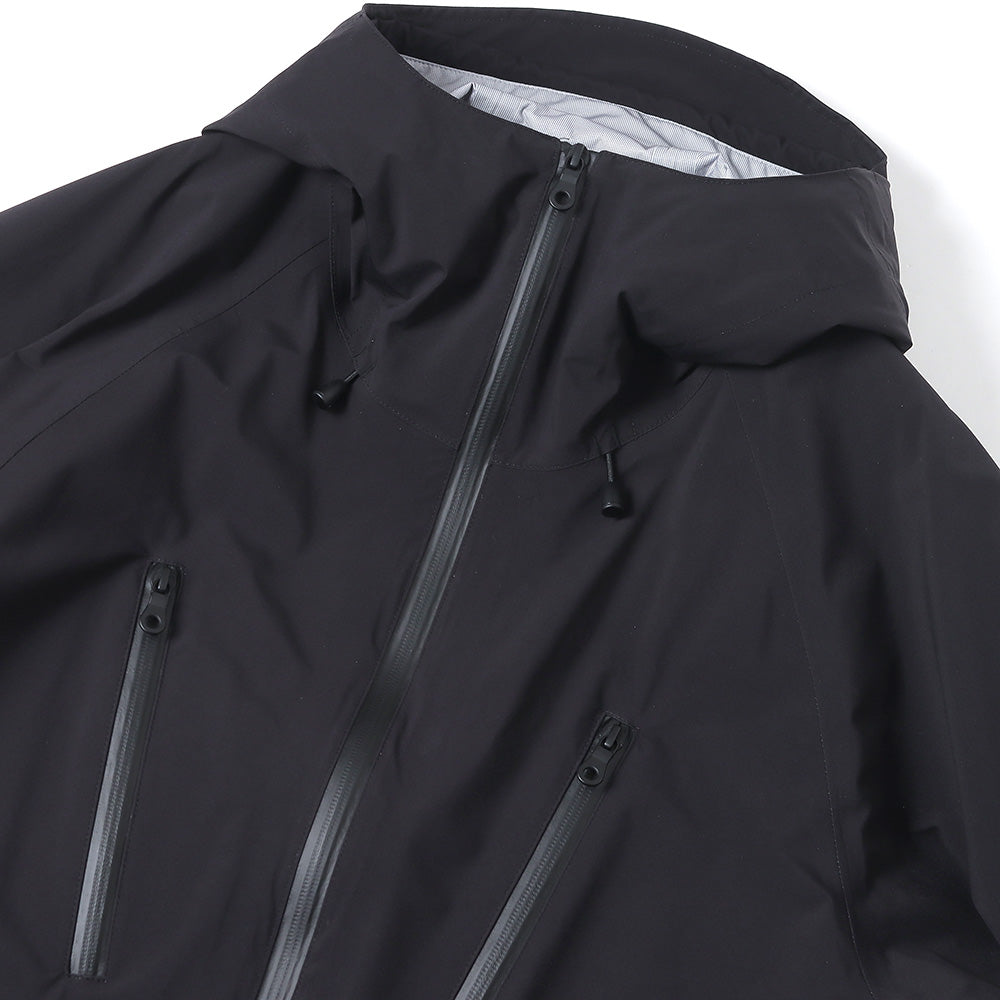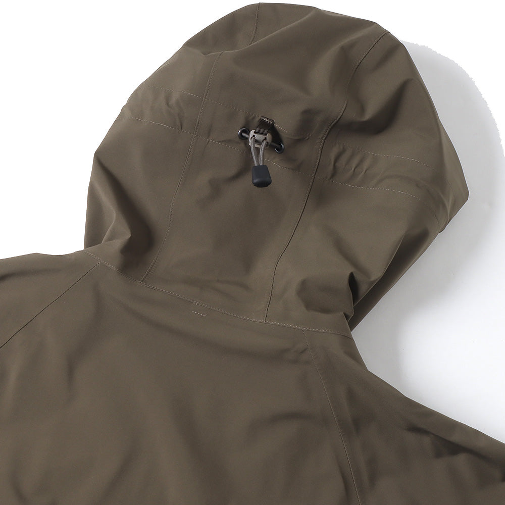 耐水圧:20000 ㎜ 透湿度:20000g/m2/24h 3 レイヤー。ソフトで適度なストレッチ性がある、高耐水・高透湿性を持ち合わせた生地です。シームテープ、止水ファスナーを使用しています。