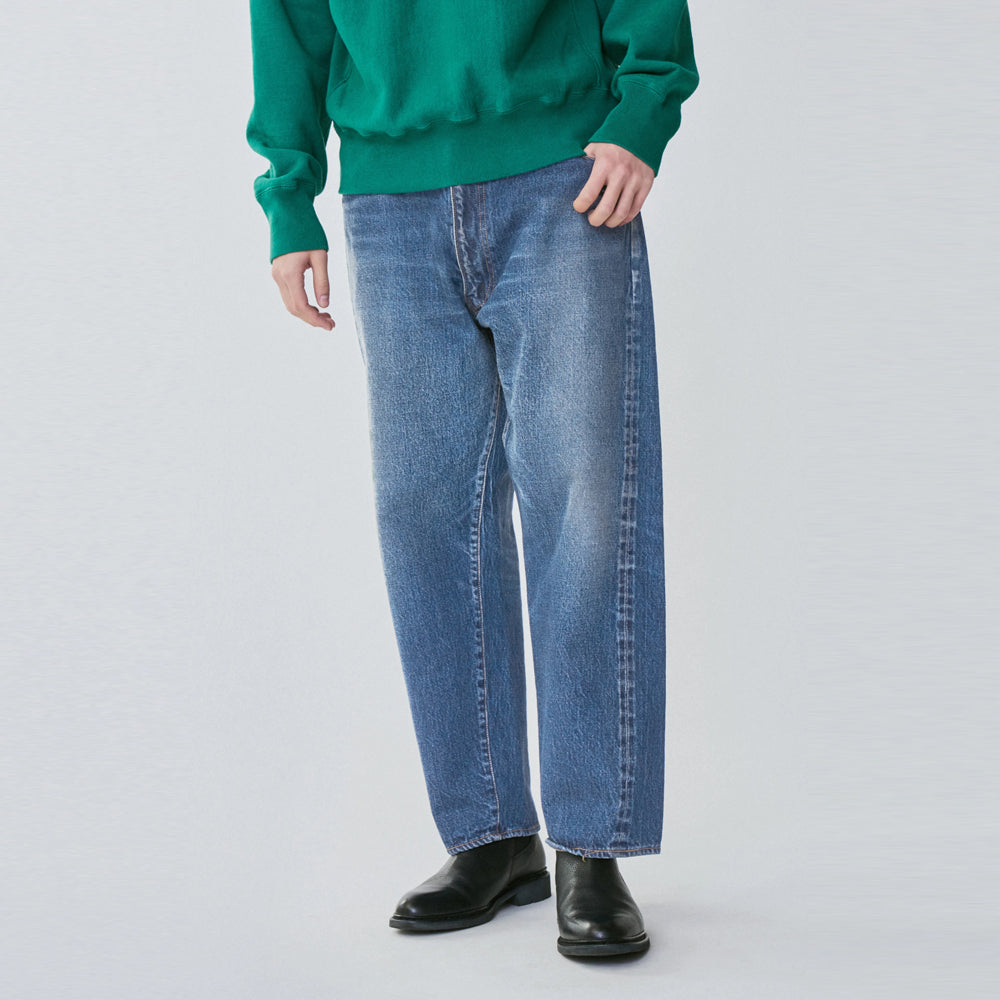 40年代、デニム繁栄期のデニム(デットストック)を徹底的に解析して製作。ローテンションで旧式織機にてゆっくりと織り上げている為味わい深い凹凸感も特徴になります。