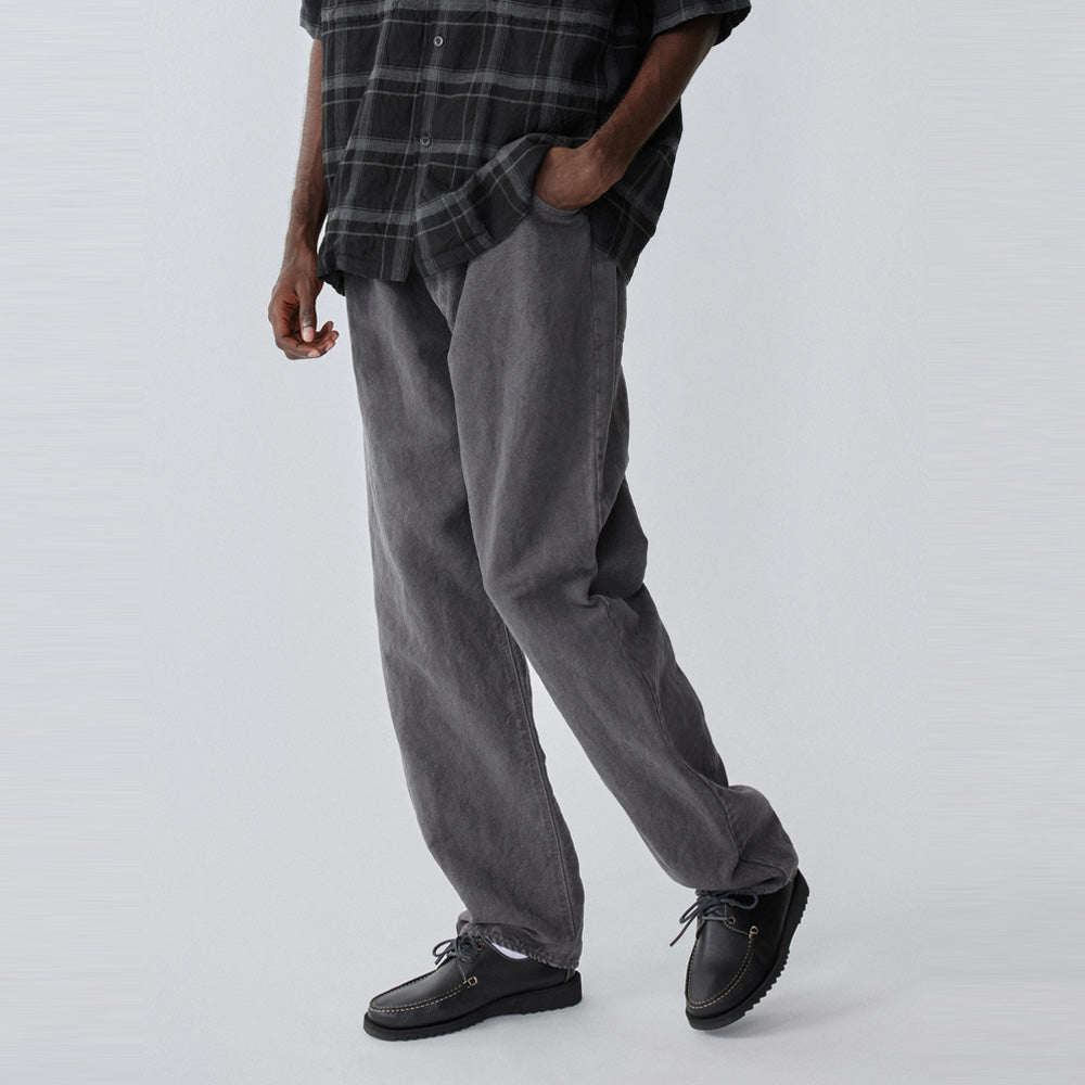タテ糸にコットン、ヨコ糸にヘンプの太番手を使用し、高密度に織ったヘビー・オックスフォード。