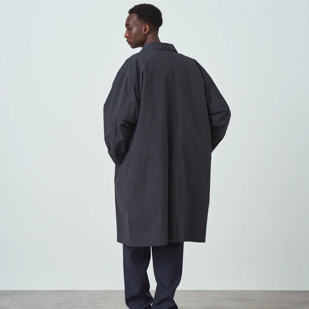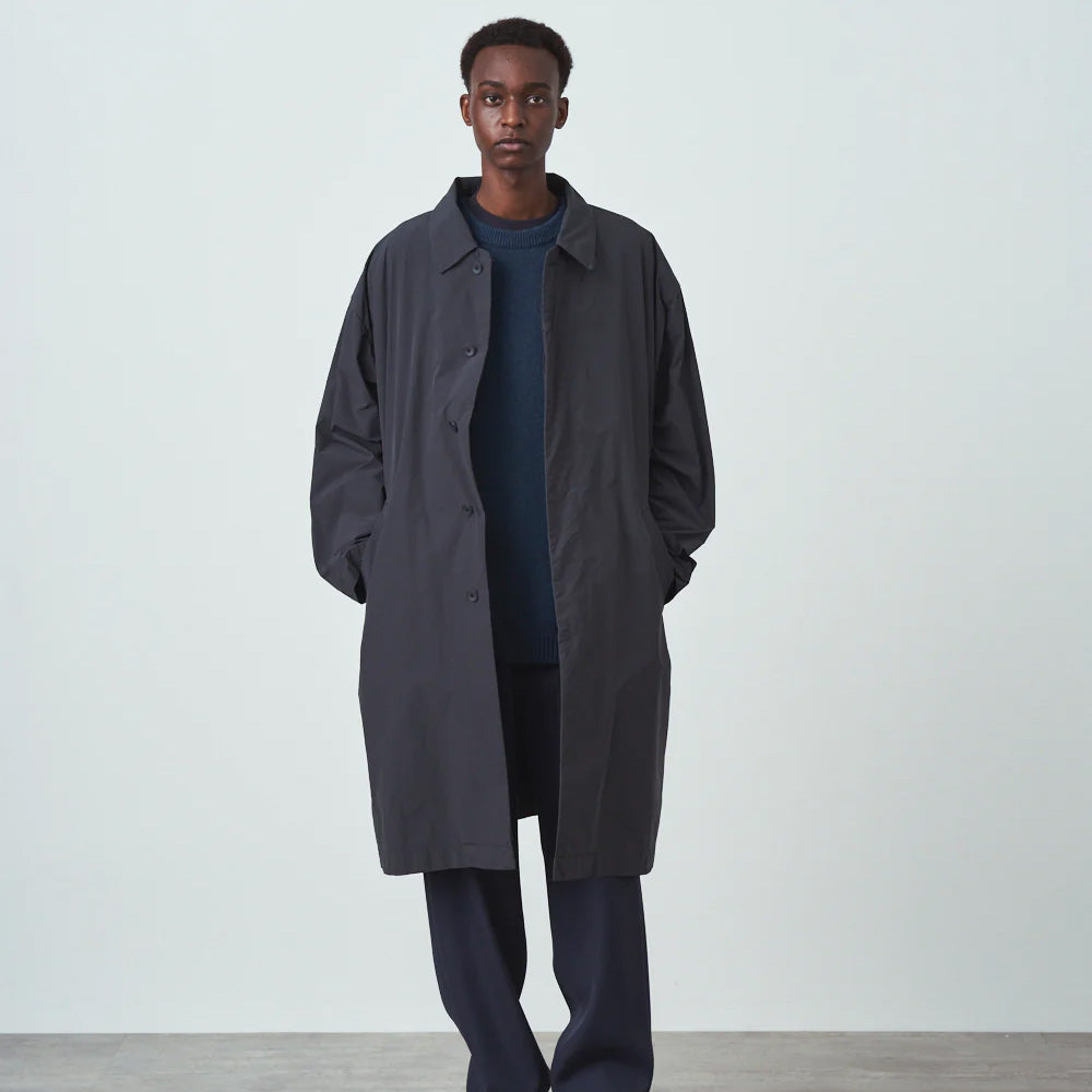 ベーシックなストレートシルエットのバルマカーンコートです。身頃部分のライナーにはウール混の高い生地を使用しており表地も防風性の高い素材ですので、真冬でも温かく着ていただけます。シワになりづらいので、持ち運びも便利でライナーを外すと3シーズンは活躍してくれる定番アウターです。