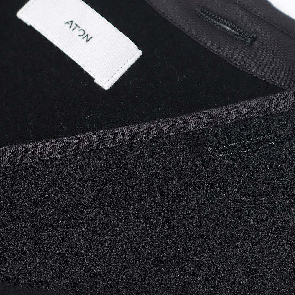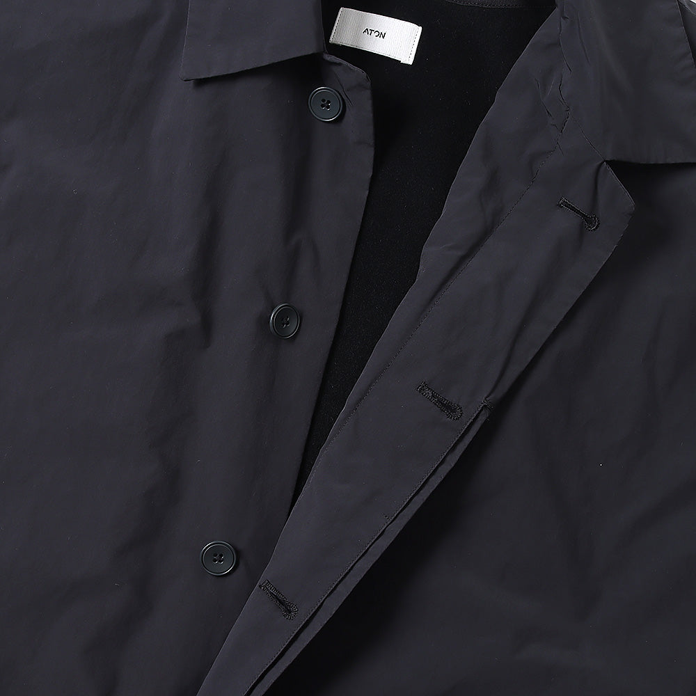 石川県能美市にて織り上げられたファブリックです。天然繊維のような“生きている”素材感を機能糸でクリエイトしたエイトンシグネチャーマテリアルです。ナイロンとポリエステルの熱収縮率の違いを生かし、環境の変化により表情が変わっていく様を楽しむことのできる糸を高密度に織り込むことにより、独特の風合いを表現しました。