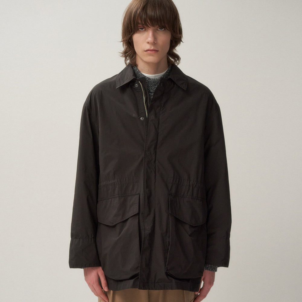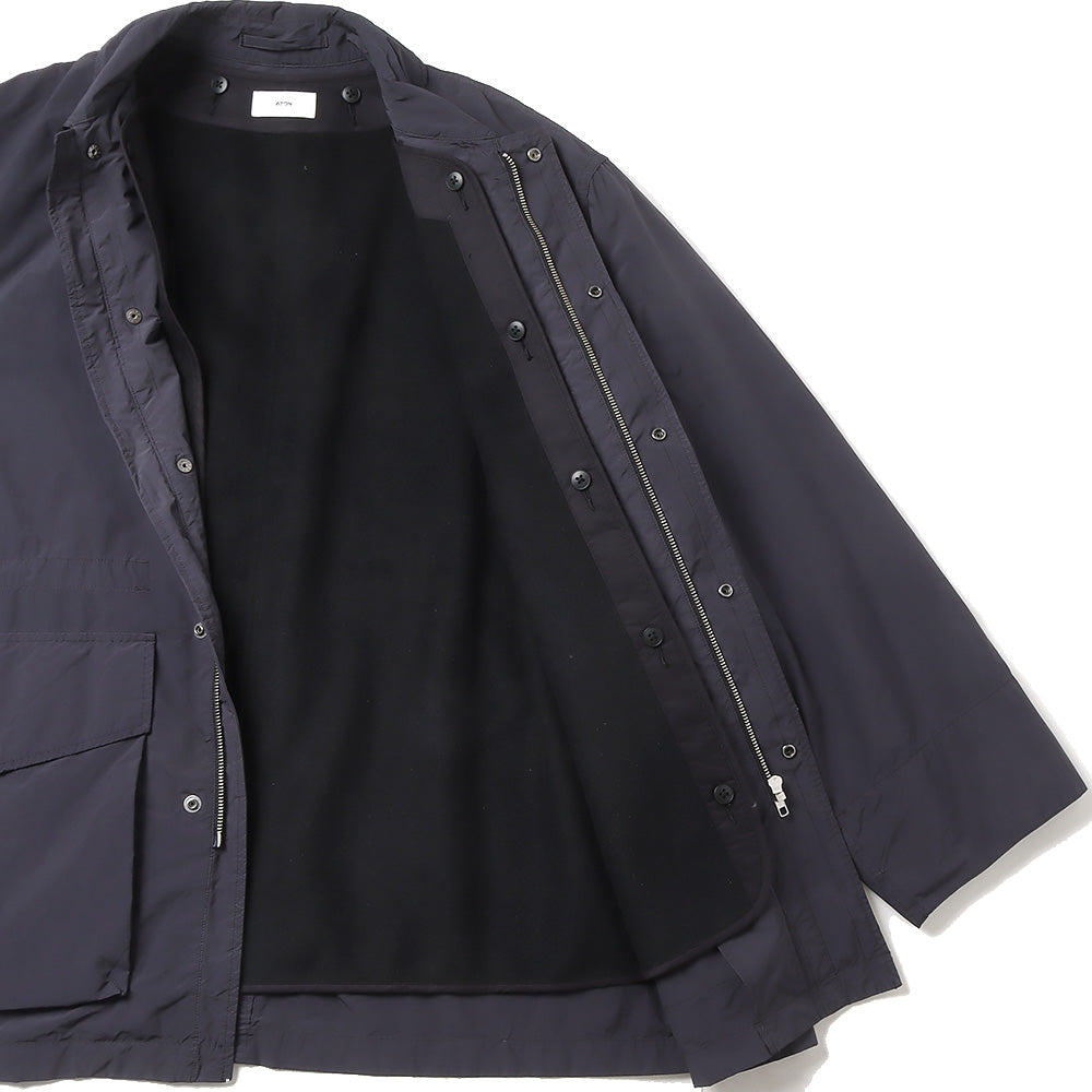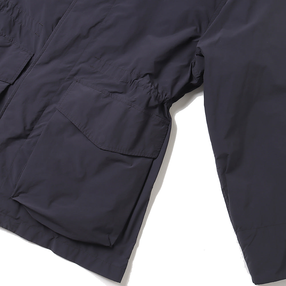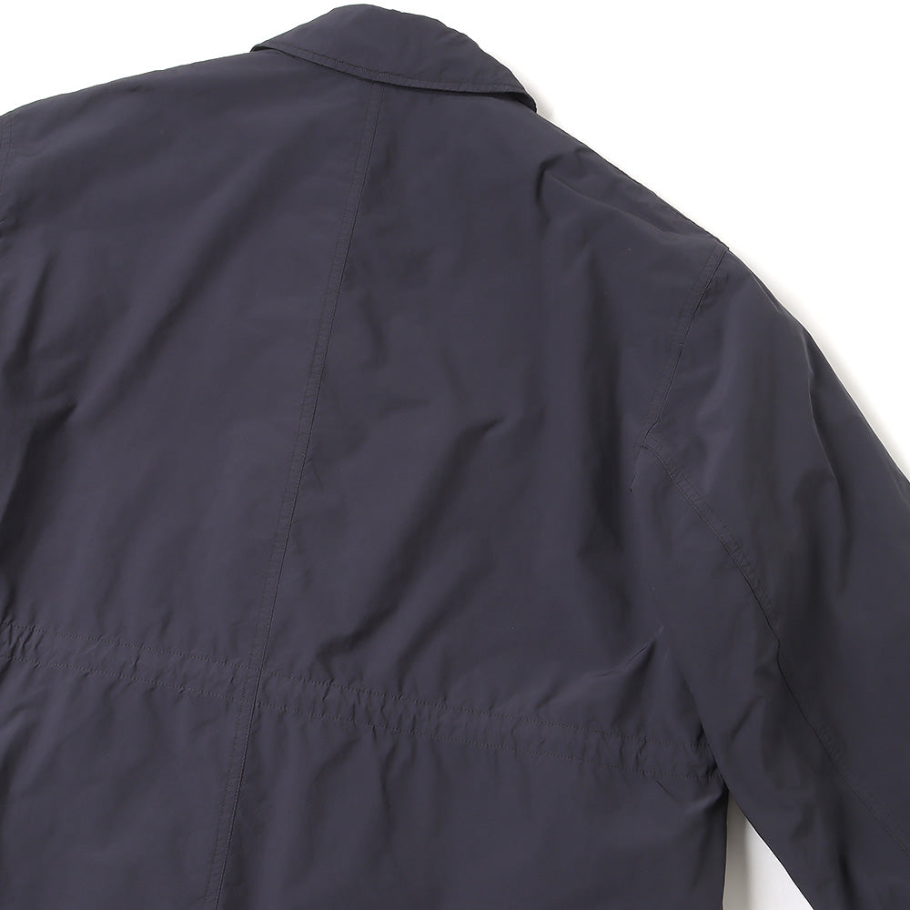 ナイロンとポリエステルの熱収縮率の違いを生かし、環境の変化により表情が変わっていく様を楽しむことのできる、天然繊維のような糸を使用し、石川県能美市にて高密度に織り込むことにより、独特の風合いを表現した素材です。製品染めで仕上げ、撥水加工を施しています。ライナーはしっかりと保温性が伴うので、真冬でも着用することができます。