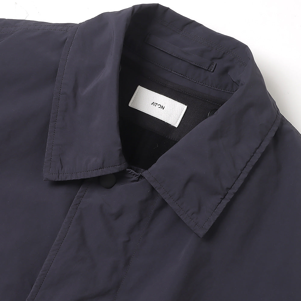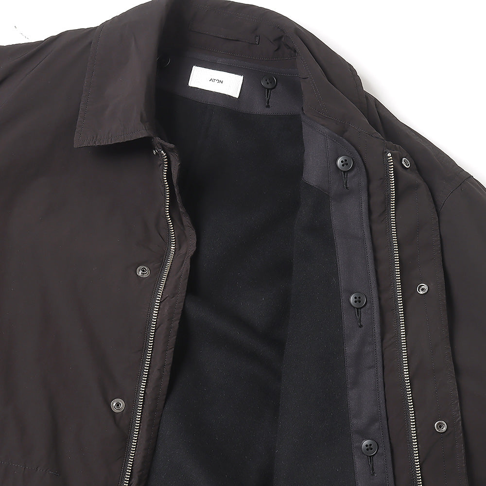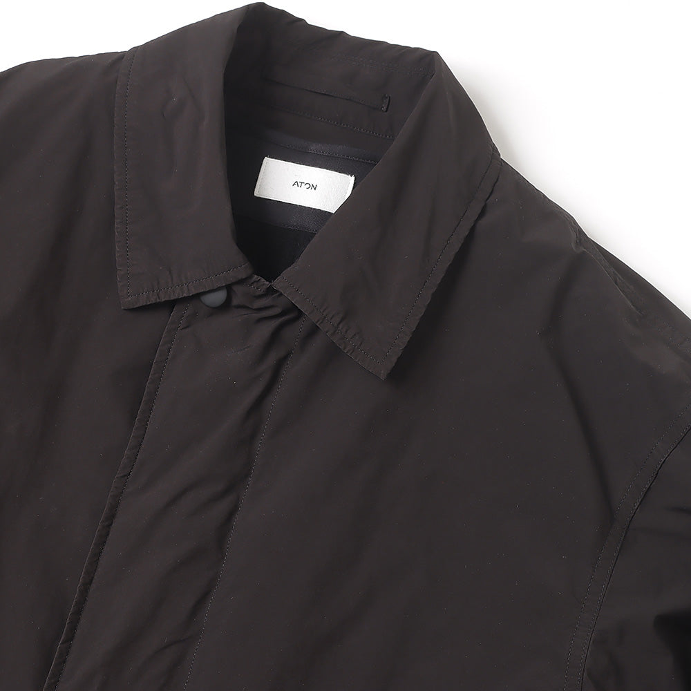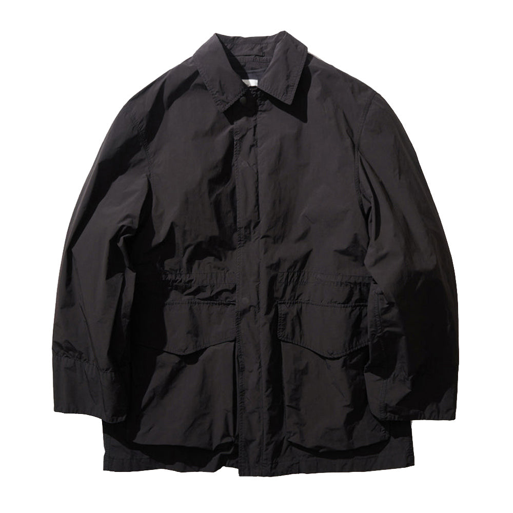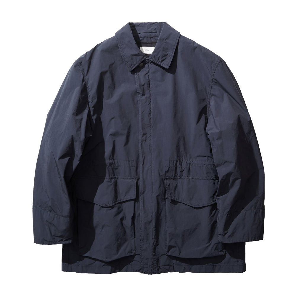ナイロンとポリエステルの熱収縮率の違いを生かし、環境の変化により表情が変わっていく様を楽しむことのできる、天然繊維のような糸を使用し、石川県能美市にて高密度に織り込むことにより、独特の風合いを表現した素材です。製品染めで仕上げ、撥水加工を施しています。ライナーはしっかりと保温性が伴うので、真冬でも着用することができます。