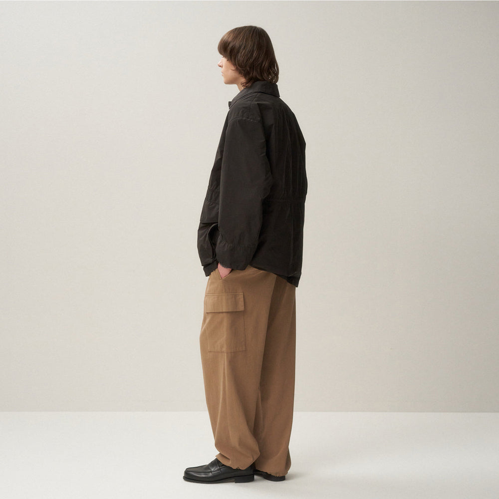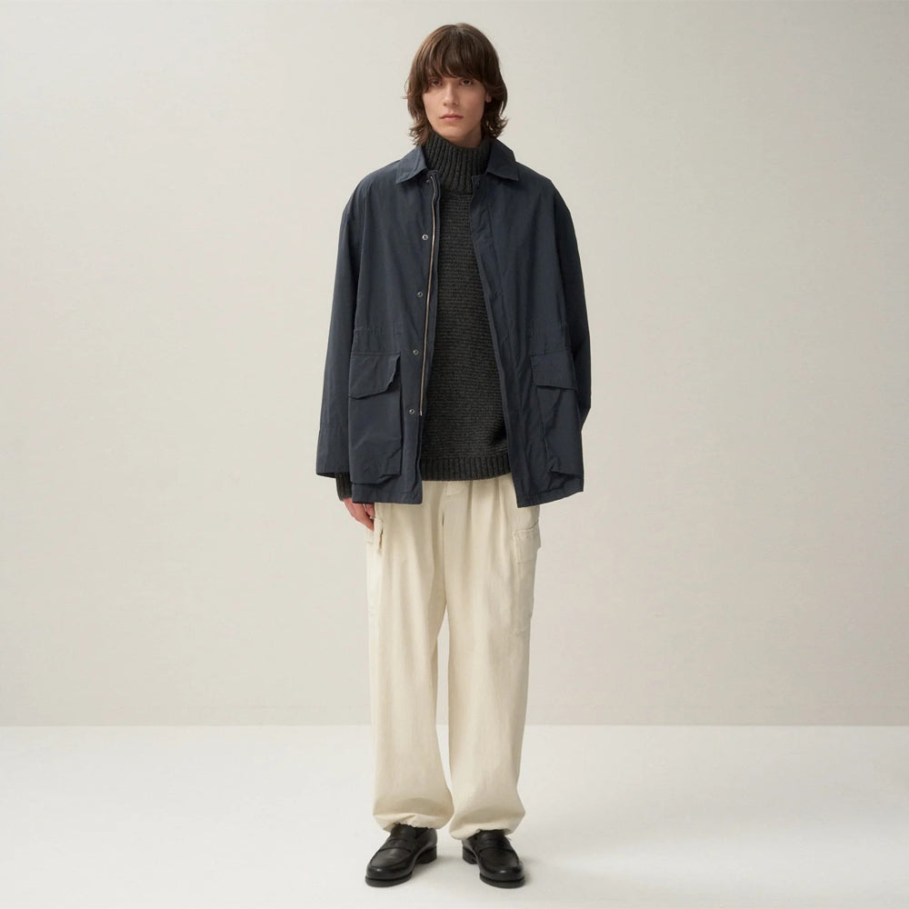 60年代のサファリジャケットをベースに、取り外し可能なライナーつきの真冬でも着用可能なアイテムに仕上げました。大きめのマチがついた立体的なポケットが特徴です。袖まであるライナーにはウール混の高い生地を使用しており、表地も密度の高い素材ですので、真冬でも温かく着ていただけます。シワになりづらいので、持ち運びも便利で、ライナーを外すと3シーズンは活躍してくれるアウターです。