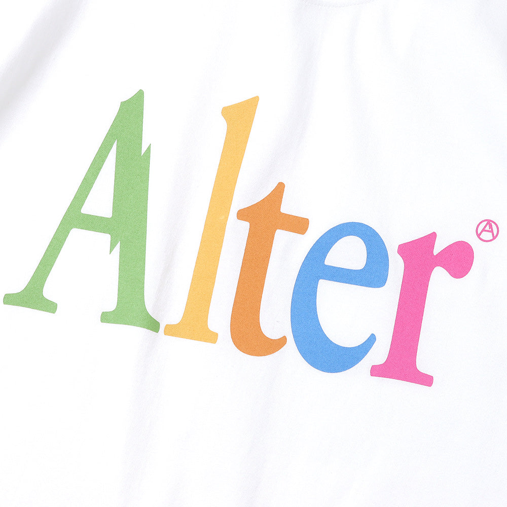 レギュラーオンスのコットンTEEは、23CCシーズンのキーワード”Alter”をプリント。デカレイアウトを彩るA●pl●カラーは嬉しいチョイス。