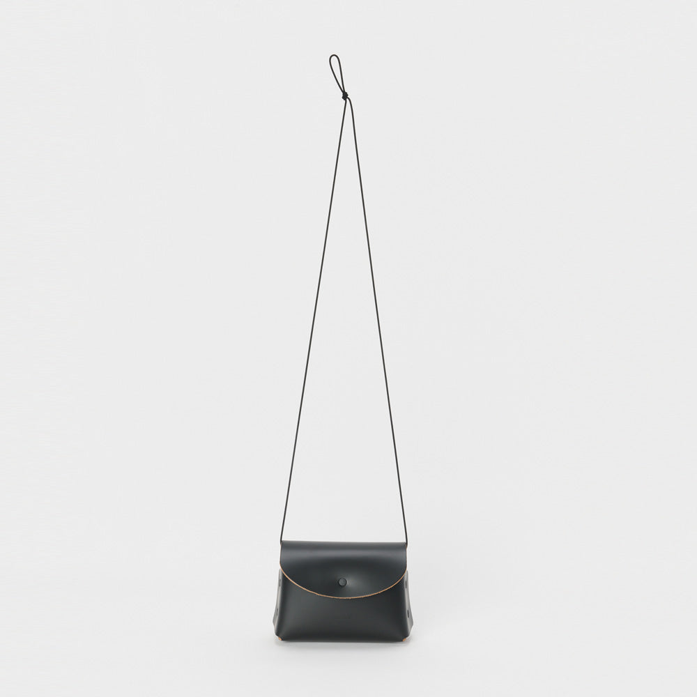 素材は学生用のローファーなどにも使用されるガラスレザーで、顔料とウレタン、塗料を使いハリを持たせた仕上げは立体的な構造に適したものです。