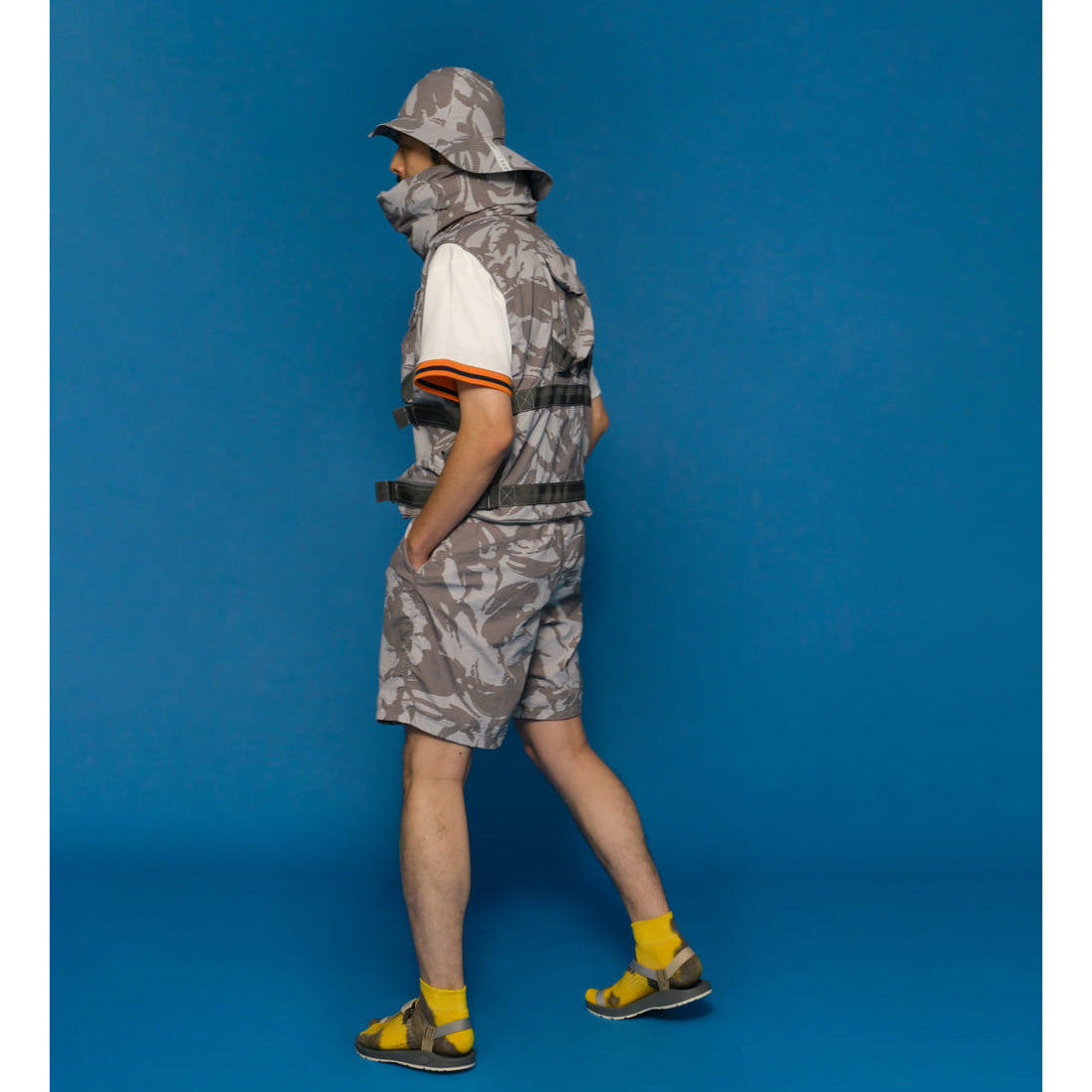 定番型のショーツはバギーなシルエット。最新作では通称”Shoegazeカモ”を施したタスランナイロンを採用し、クライミングパンツ型のバックルベルトを追加。イージーな履き着心地に加え、撥水・透湿・速乾といったアウトドア対応型スペックの充実は魅力。