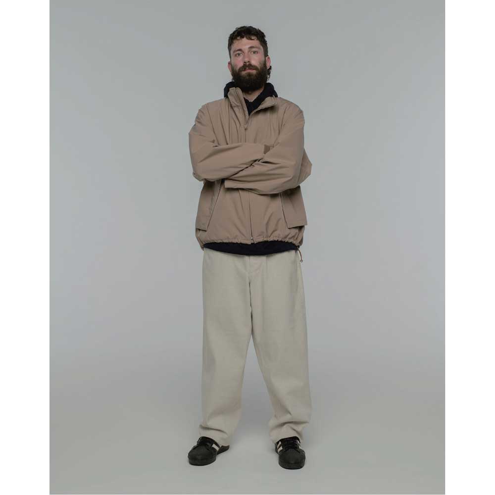 糸の段階で耐久性撥水加工された二重織りストレッチ素材は