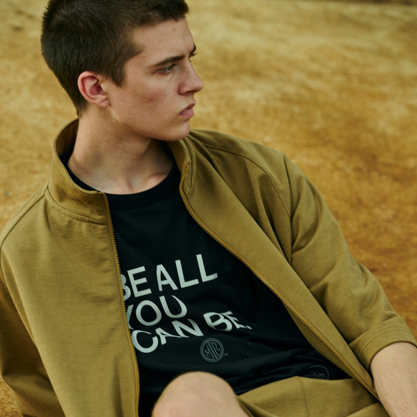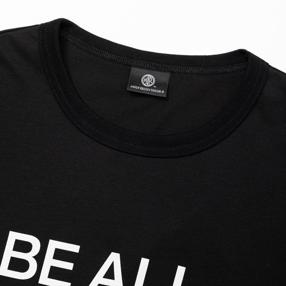 この様な高機能な生地を用い、訓練等のアクティブな用途にも対応できるようデザインし、 前面にはBE ALL YOU CAN BEというメッセージをプリントしています。