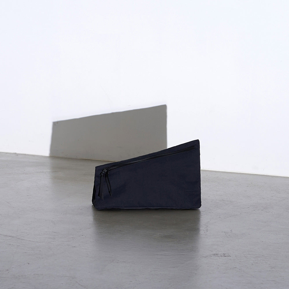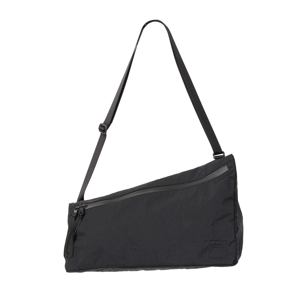 現代生活に不要なデザイン要素と無駄を排除するミニマリズムの追求をするBLANKOF(ブランコフ)。ミリタリーの堅牢性とアウトドアの実用性をベースに脚色を最小限に抑えた製品の本質に近づくデザインを提供する。Graphpaperとの初のコラボレーションはジオメトリックな造形をそのままバッグに落とし込む実験的な試み。三角の形にデザインしたショルダーバッグは表生地に軽量で耐久性に優れ、撥水性にも長けたBLANKOFオリジナルナイロン素材を使用。内装にはファスナー付きの内ポケットを完備。ボトムの底板が衝撃を吸収し、型崩れを防いでくれる。