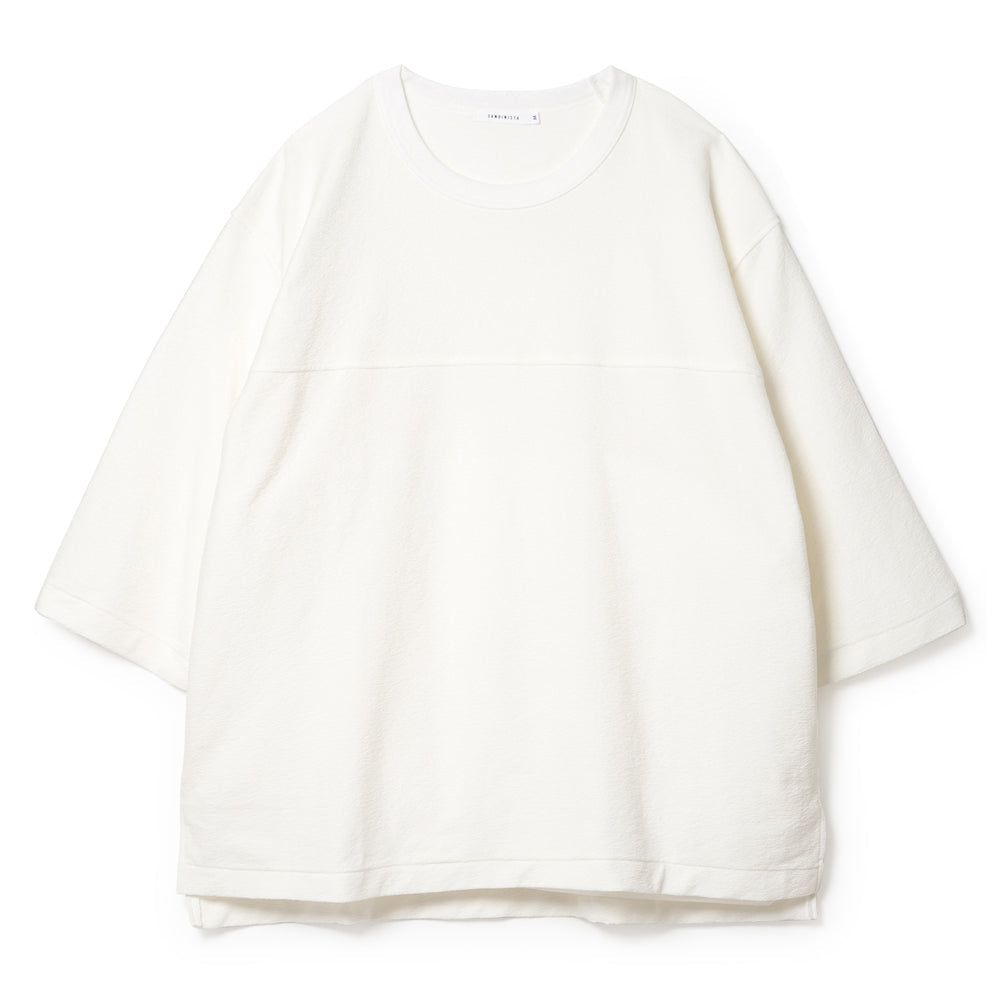 上質で特殊なブロックインレー素材を使用した、フットボール7分袖丈Tシャツです。