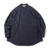 なめらかに整った繊維そのものの光沢感と、均一な撚りにより毛羽立ちにくい超長綿であるスーピマコットン。非常に繊細な糸番手で製織したブロード生地を使用。高級シーツにも使用されている生地で適度なハリと柔らかさがあり着心地が非常に良い。ラインはボリュームのあるボックスシルエットのバンドカラー。肩の傾斜や低く下げられたヨークの位置、アームホールの広さなど、細かなディテールを特異なバランスで仕上げたビッグシルエットが特徴。
