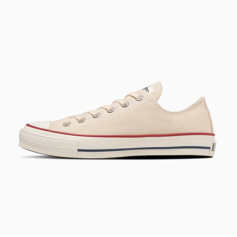 ホワイトのキャンバスに赤字で印されたインソールのコンバースロゴは、日本の国旗をイメージ。