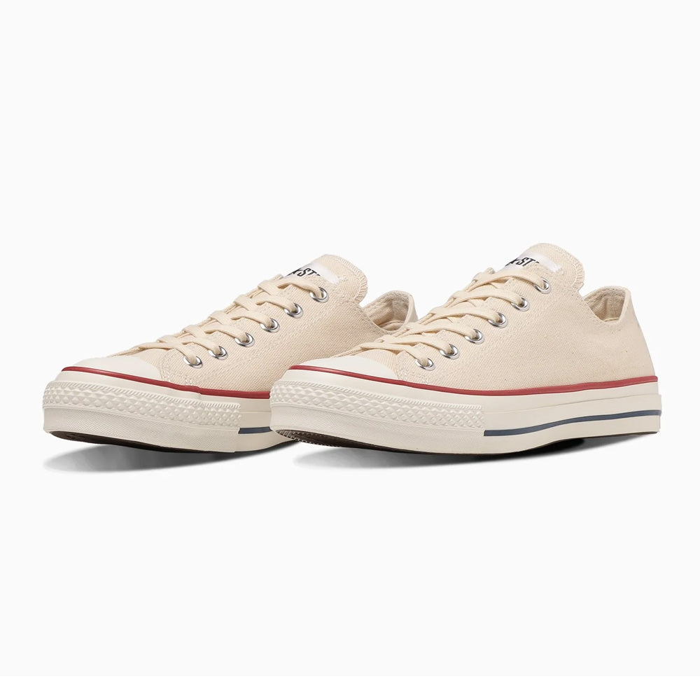 キャンバスオールスターとは異なる生成りテープ、コットンシューレースを使用。