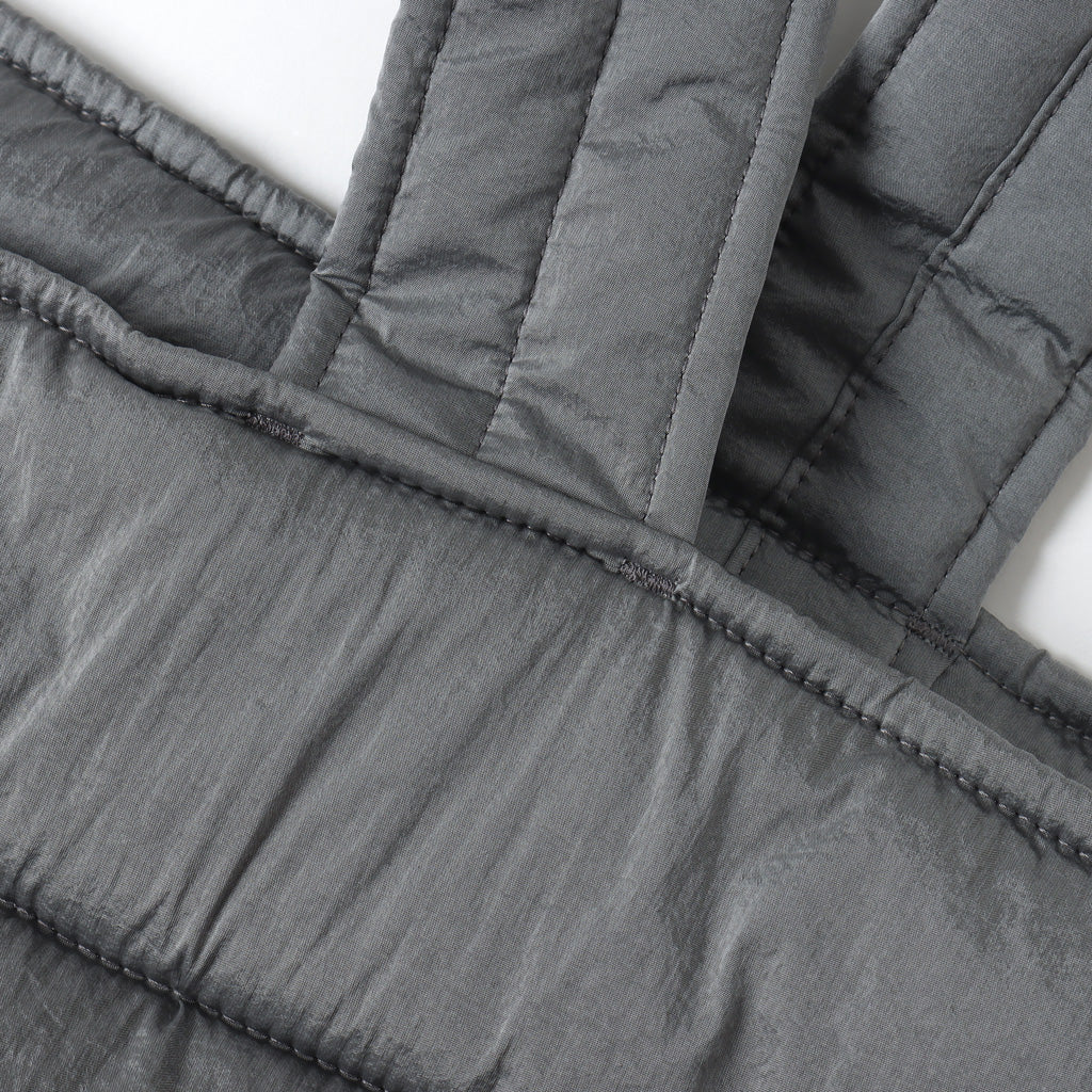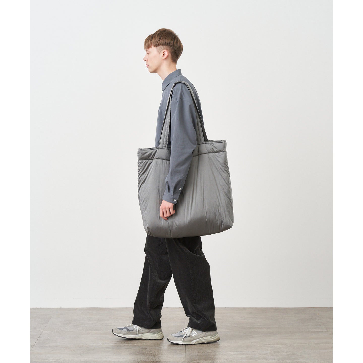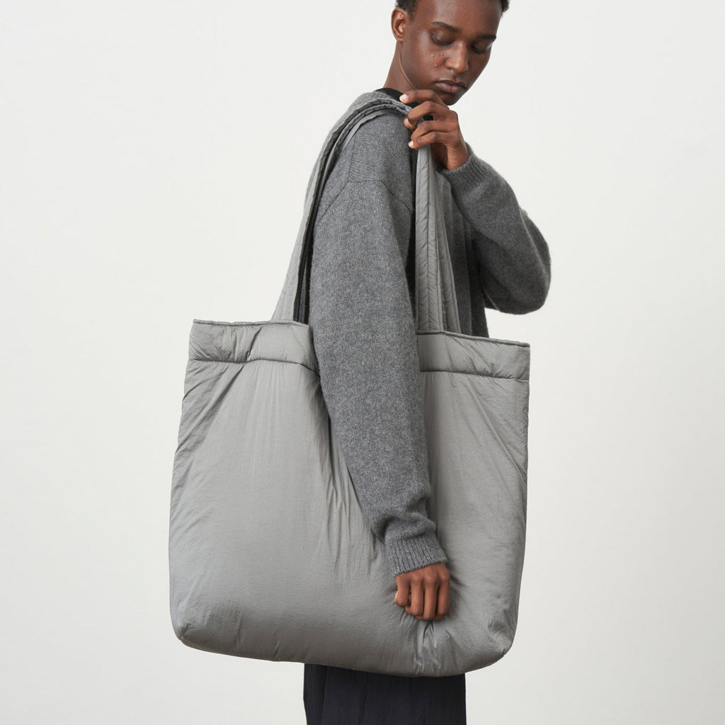 毎シーズンのイメージ素材を使って継続して作成している、簡単な四角形を2枚縫い合わせた形状の袋カバンです。かなり大容量ですが、内ポケットもついており、仕事時の荷物の持ち運びや、旅行にも便利です。ウールの中綿250gを贅沢に使用し、迫力あるカバンに仕上げました。
