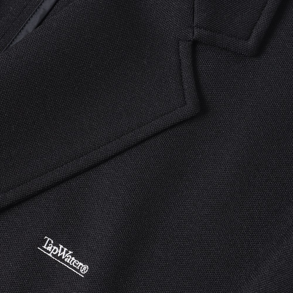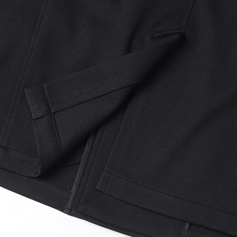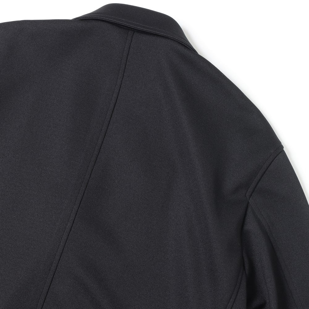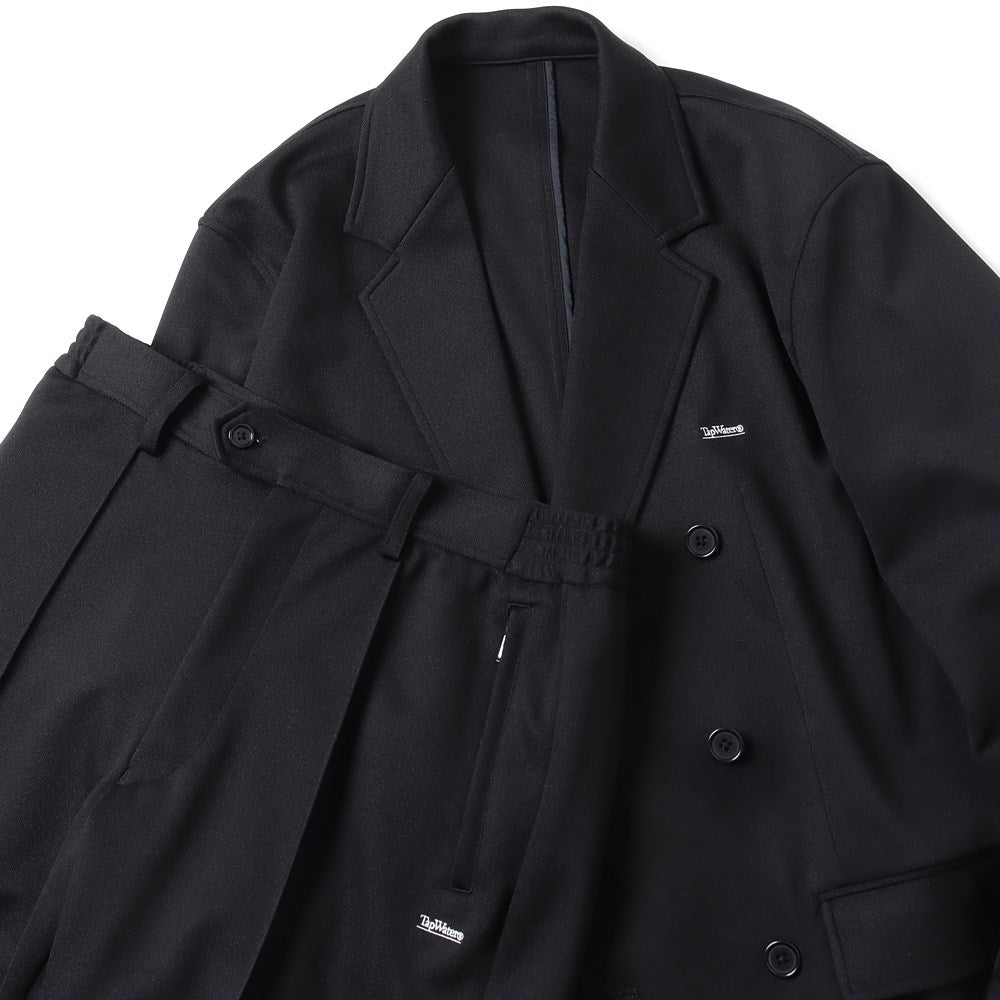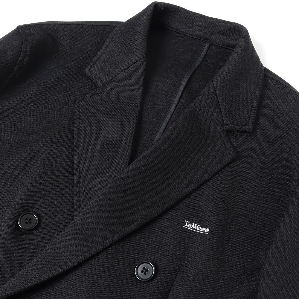 クラシックな雰囲気のダブルブレストのジャケット・ブレザーをデザインベースに、ケアのしやすさ・優れた伸縮性に加え、クリーンな表情に仕上げた高密度ジャージー素材を使用。