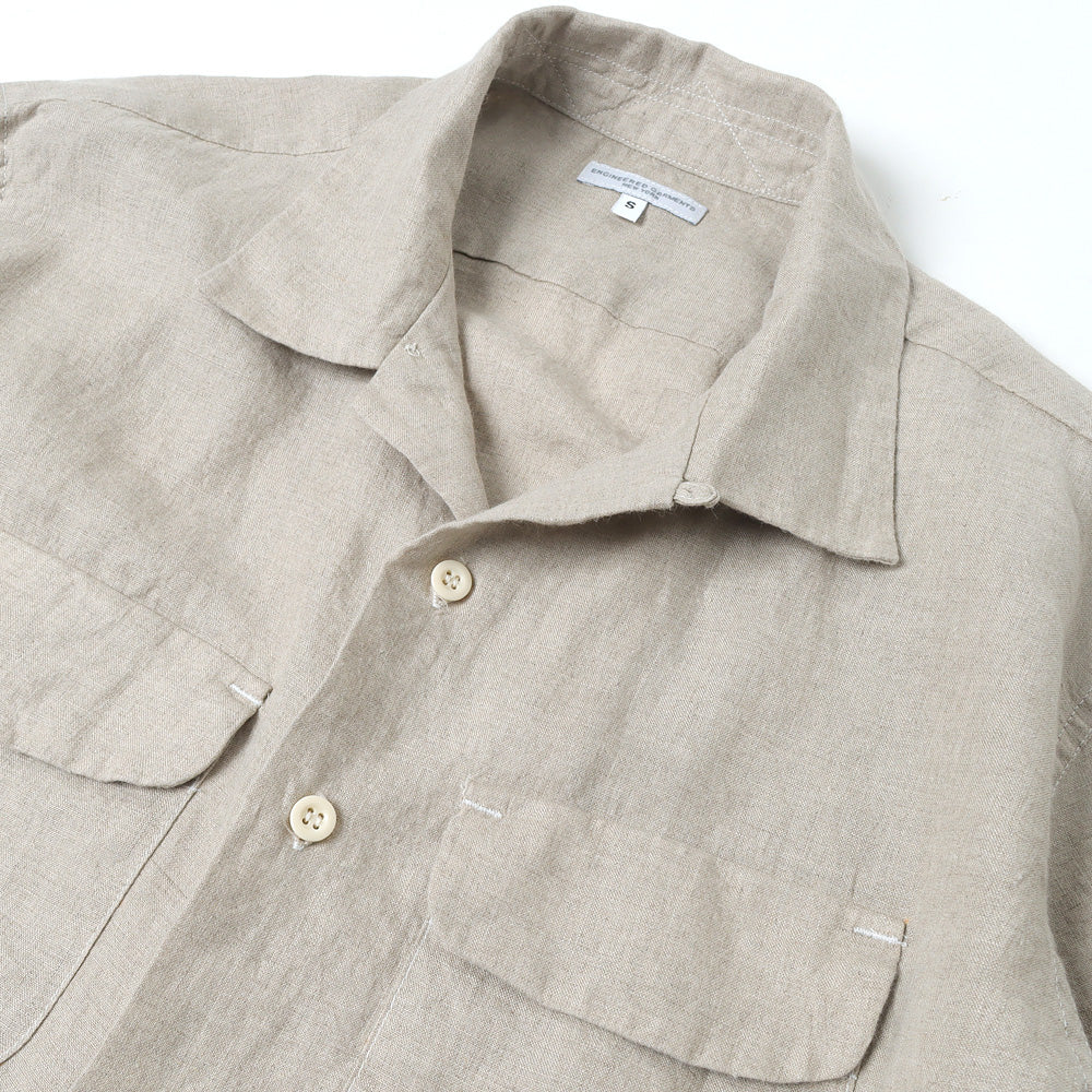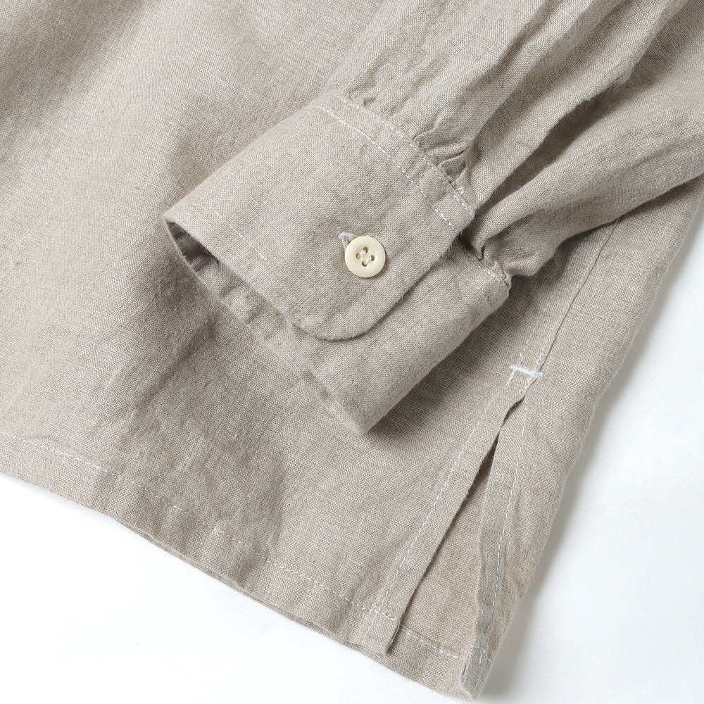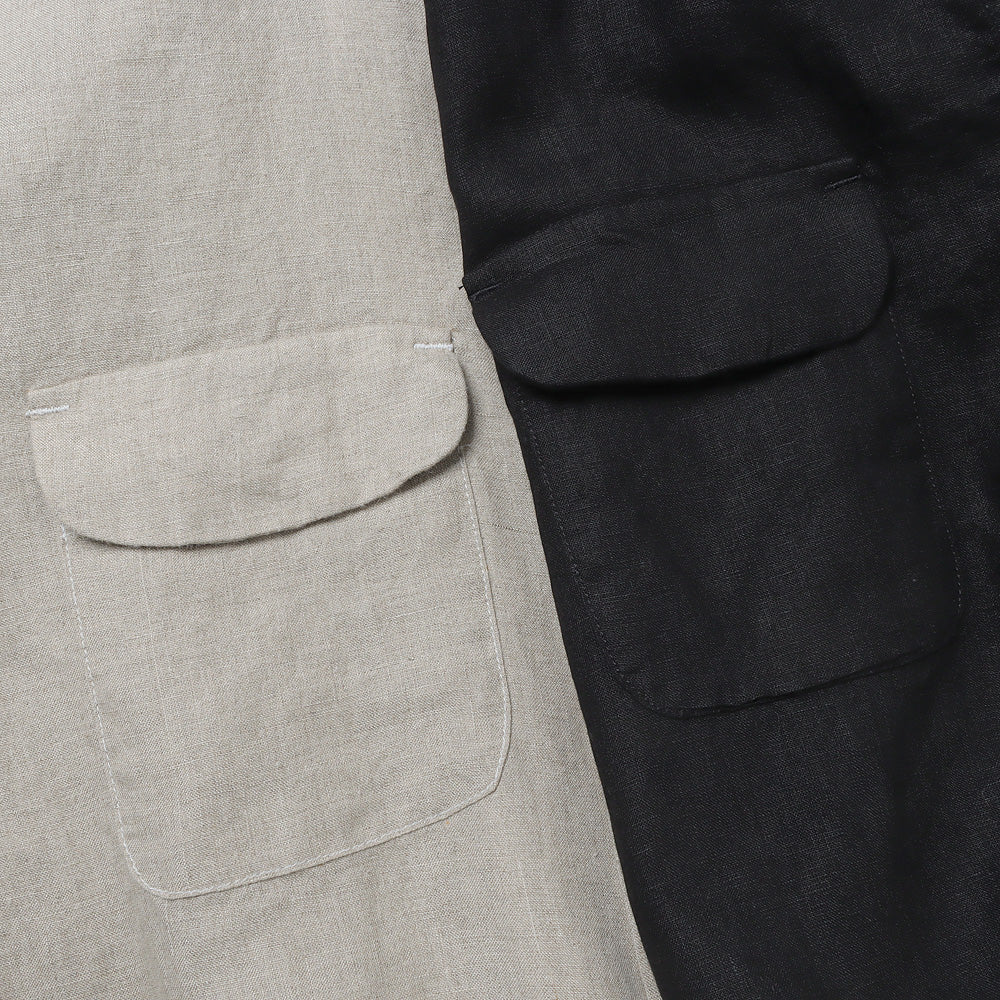 薄手のリネン素材を使用し、涼感のある肌触りと独特の風合いの良さが