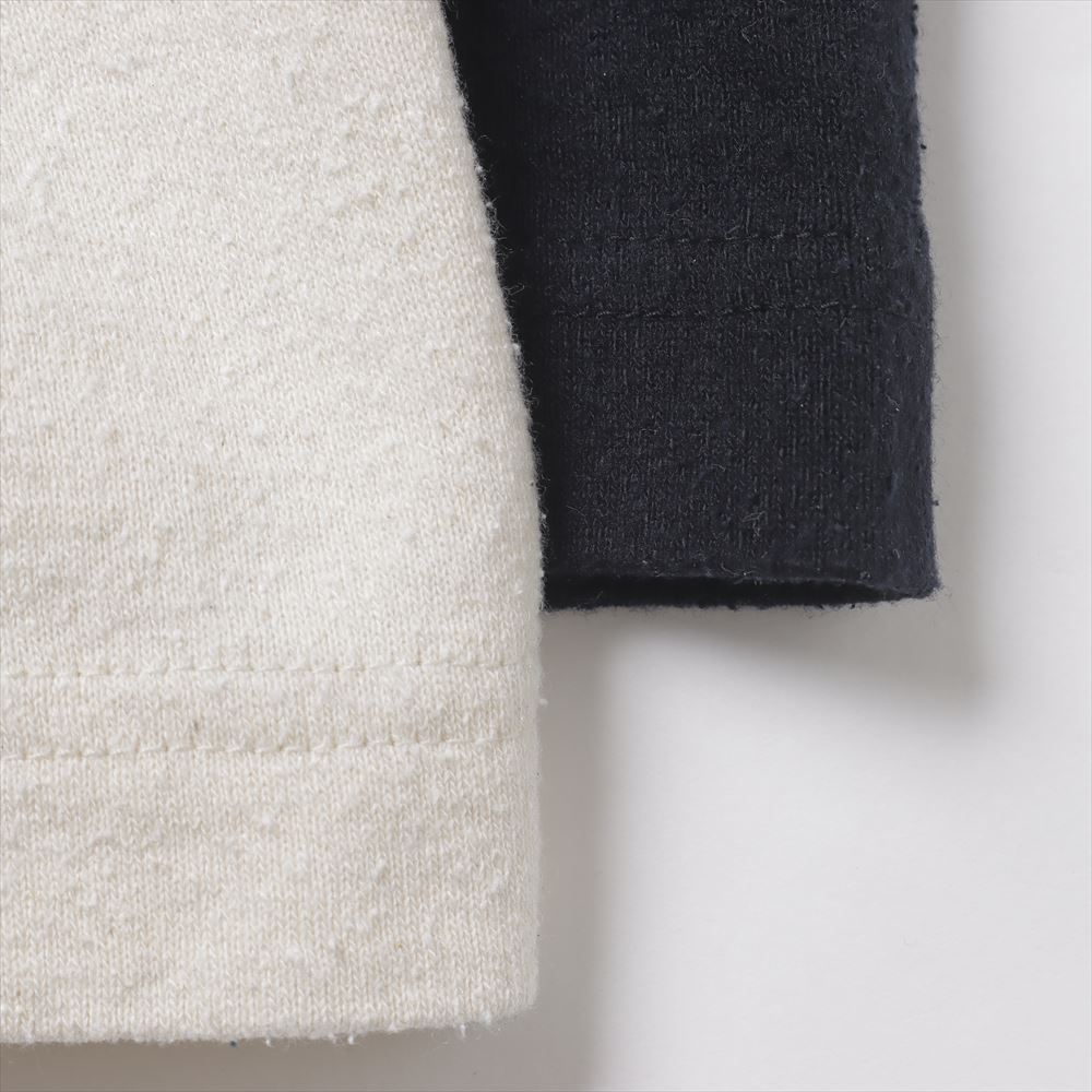 ※生地の特性上、ネップが大きく出たり、本体カラーとは違う糸毛羽( トビ込み)が混入される事があります。染のムラ感はあえて出るように作成しています。ネップは洗濯を繰り返すことで徐々に少なくなる傾向があります。