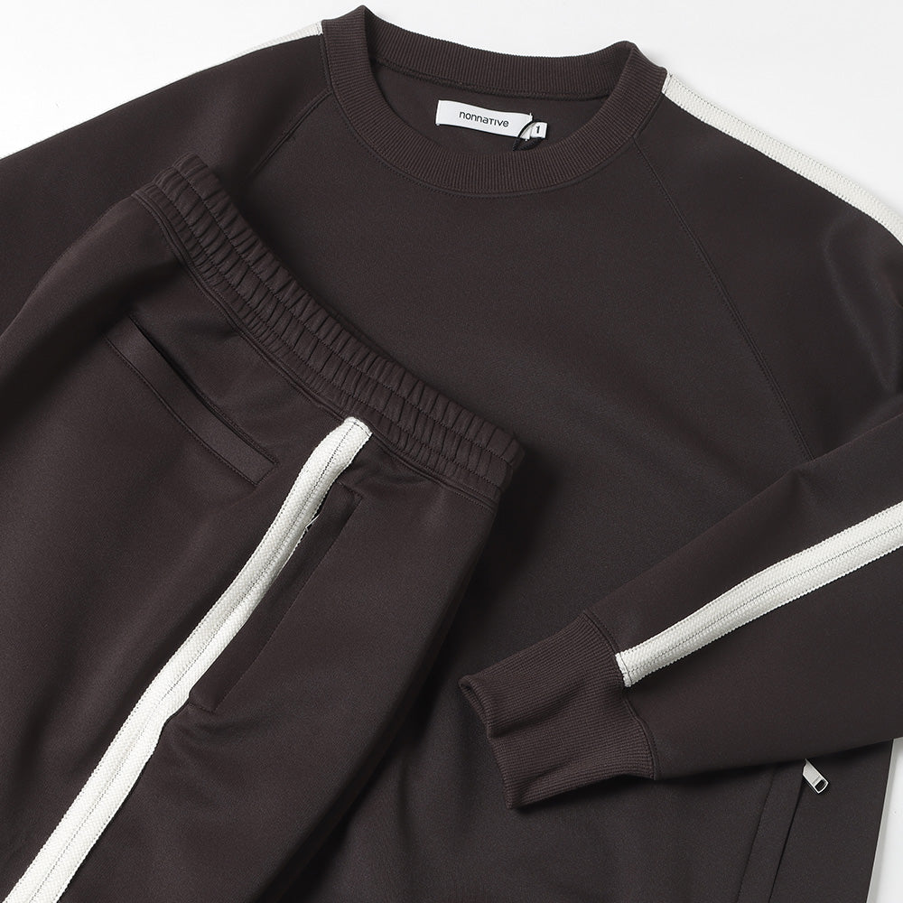 ハリ感とふくらみのあるジャージー素材を使用したイージーパンツ。