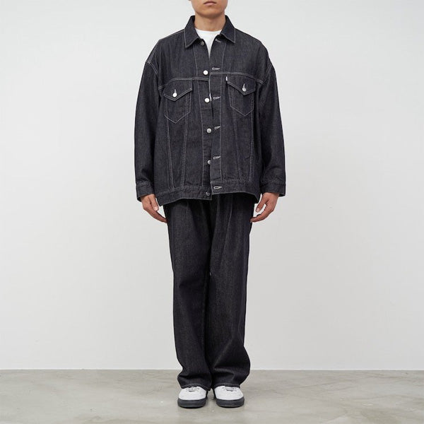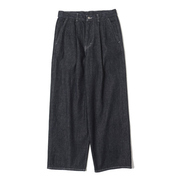 ウエストはタックが入り、ヒップからワタリにかけて適度な余裕のあるワイドストレートタイプ。
