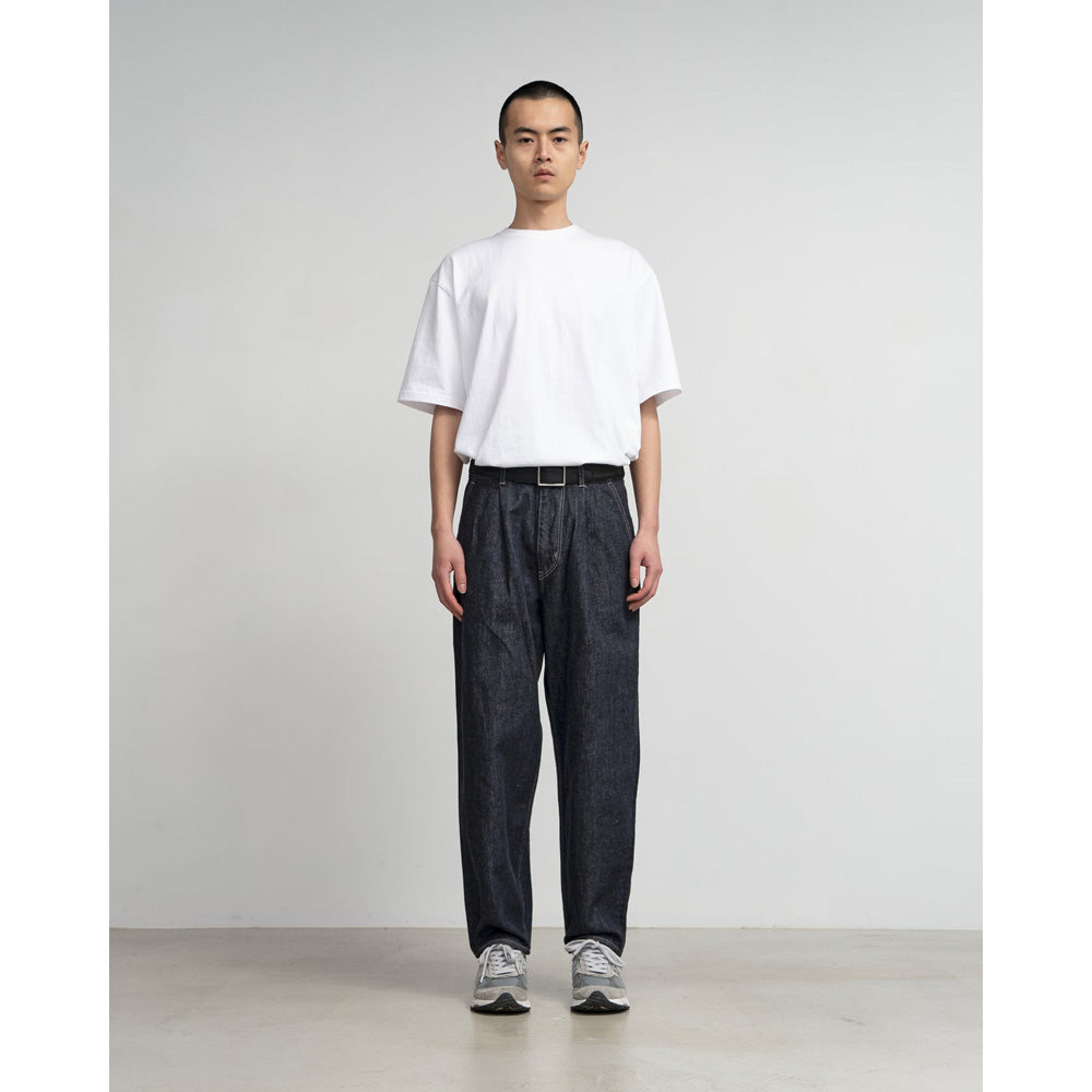 ウエストはタックが入り、ヒップからワタリにかけて若干テーパードしているシルエットになります。