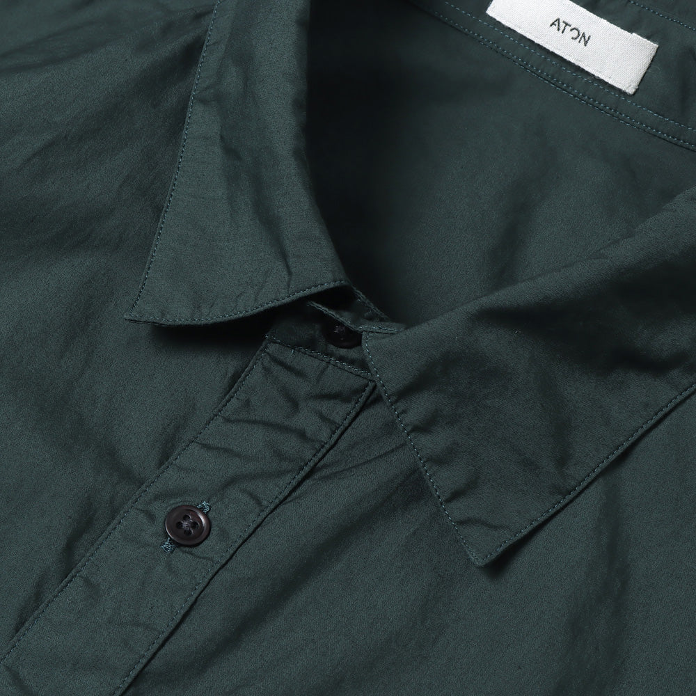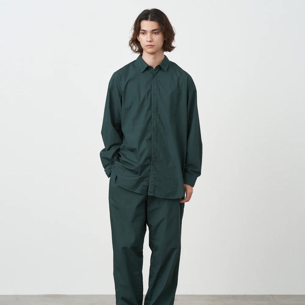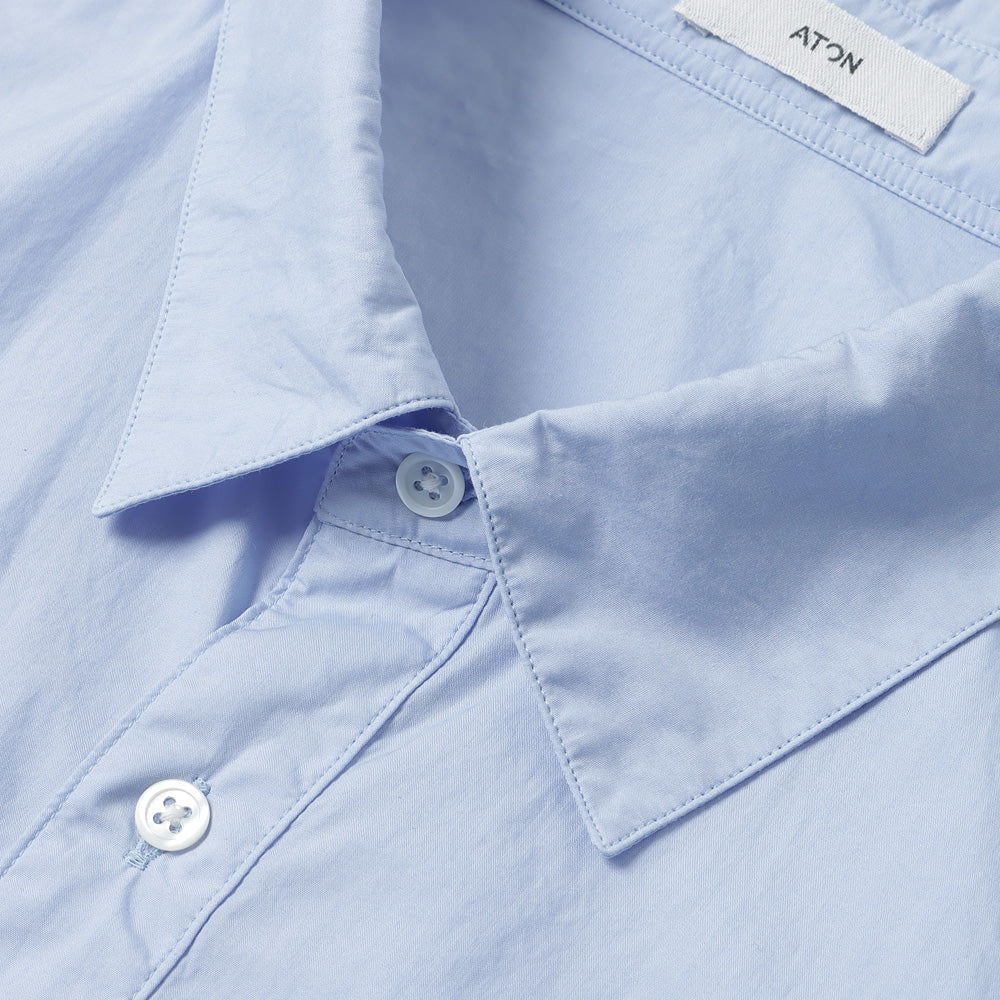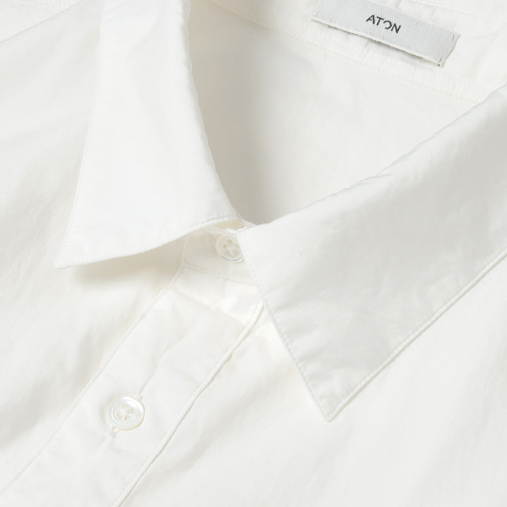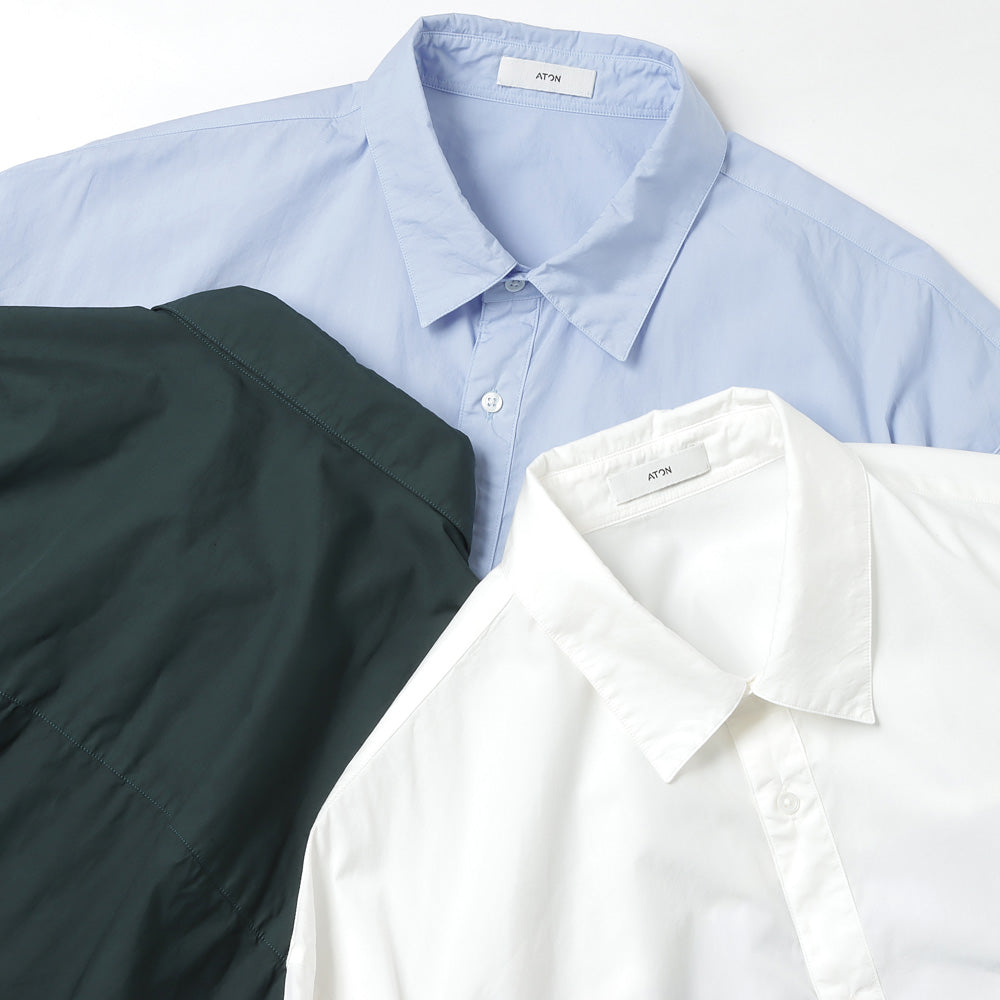 細番手の糸で、やや粗めに浜松市で織られた薄い平織り素材です。製品染めで綿本来の膨らみを最大限引き出した、滑らかでとても軽いエイトンオリジナルのローン素材です。