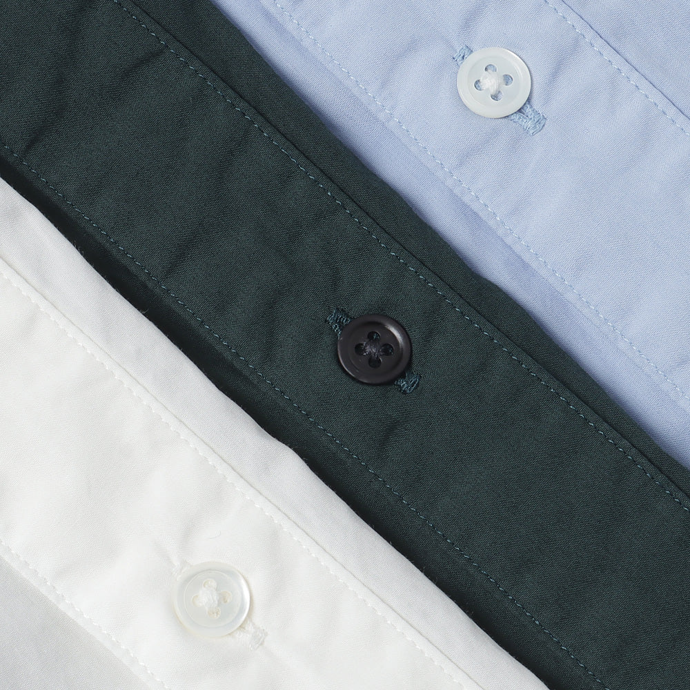 ドレスシャツ工場で、細かい運針数でのコバステッチで縫い代を仕上げ、製品染めしていますので、パッカリングも美しく見えるよう仕上げました。