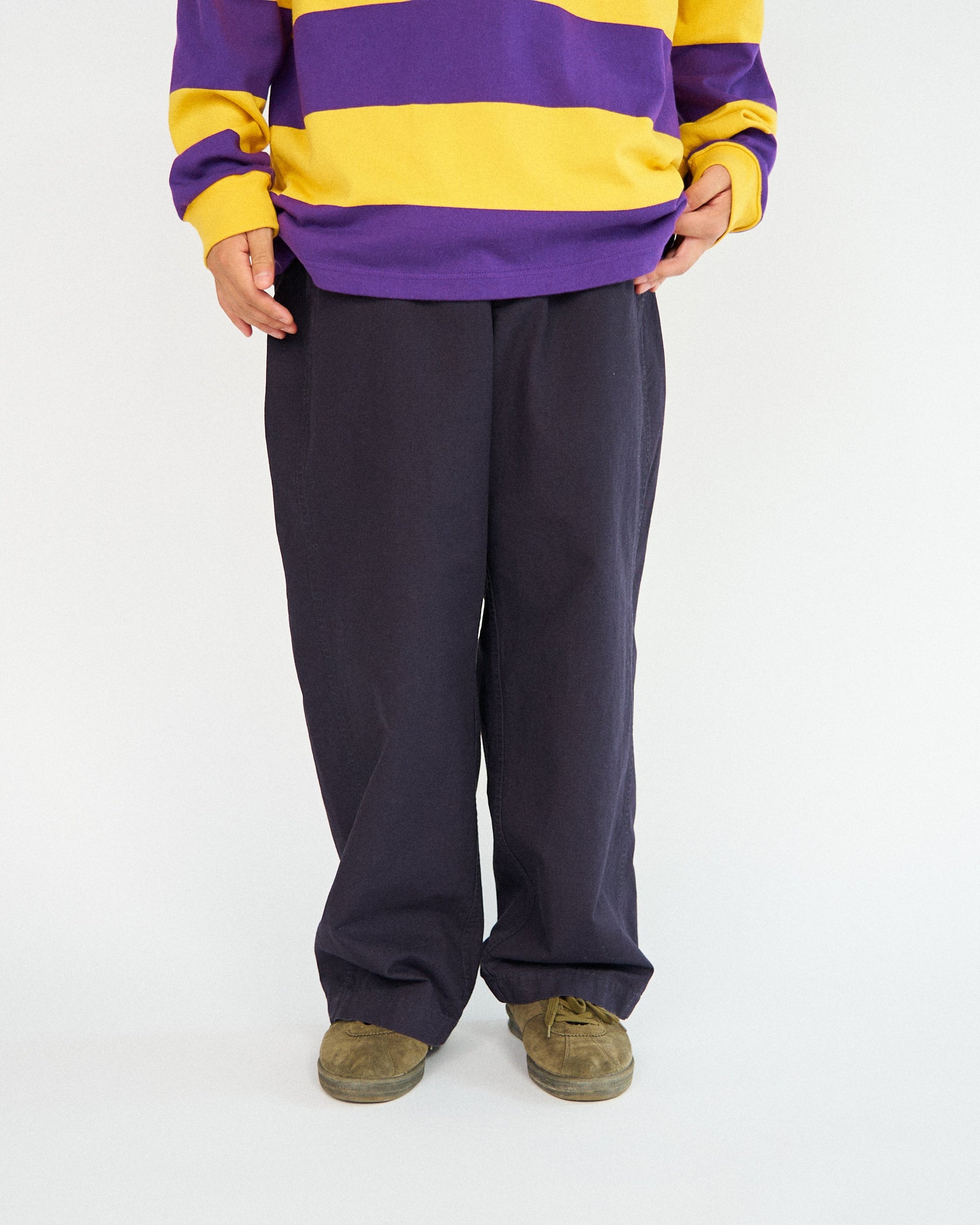 ウィメンズ仕様のアメリカ軍のユーティリティーパンツをベースに、メンズでも穿けるようにアップデイト。特徴的なウエスト周りのディテールを活かし、ボタンの数を増やすことでサイズとシルエットの調節が可能に。フロントのトップボタンを省略したオリジナルのディテールを踏襲することで、美しい腰周りのシルエットを構築した全く新しいミリタリーパンツの提案。