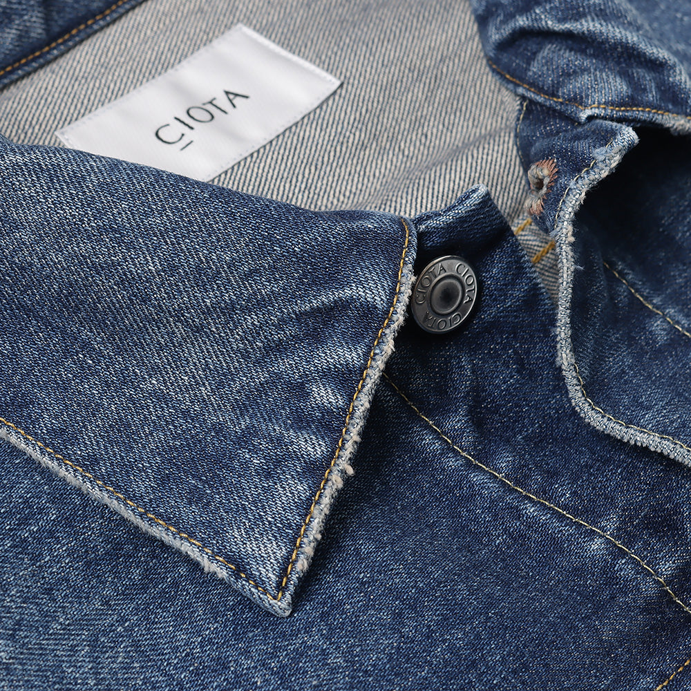 ムラ糸によるオーセンティックな表情、そしてしなやかな手触り。CIOTAデニムの独特の風合いをお楽しみいただけます。