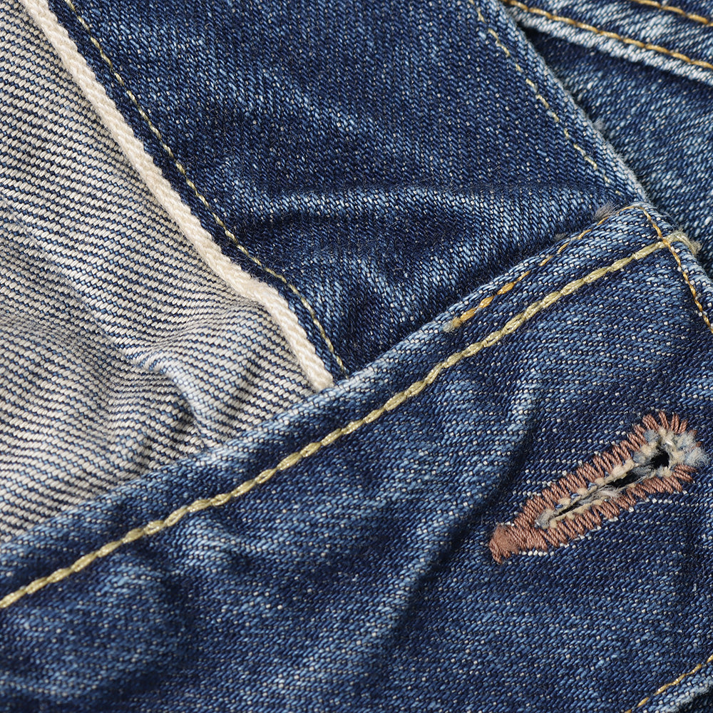 ヨコ糸は超長繊細綿・スビンコットンを使い、旧式力織機(シャトル織機)でセルビッチデニムに仕上げています。