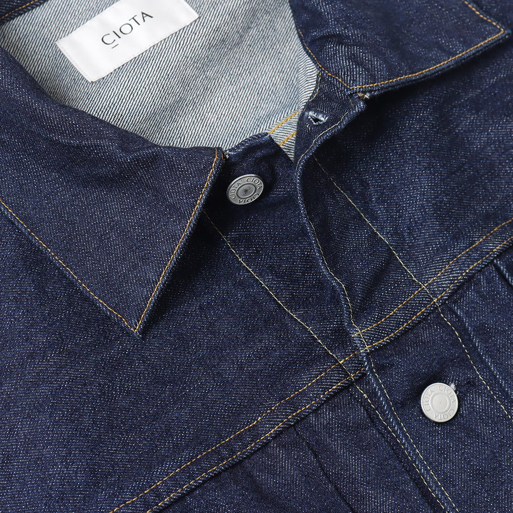 ムラ糸によるオーセンティックな表情、そしてしなやかな手触り。CIOTAデニムの独特の風合いをお楽しみいただけます。