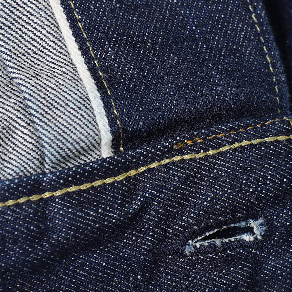 ヨコ糸は超長繊細綿・スビンコットンを使い、旧式力織機(シャトル織機)でセルビッチデニムに仕上げています。