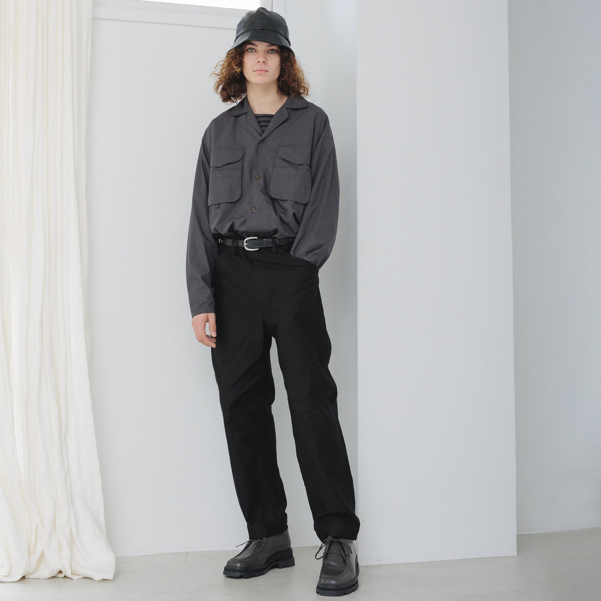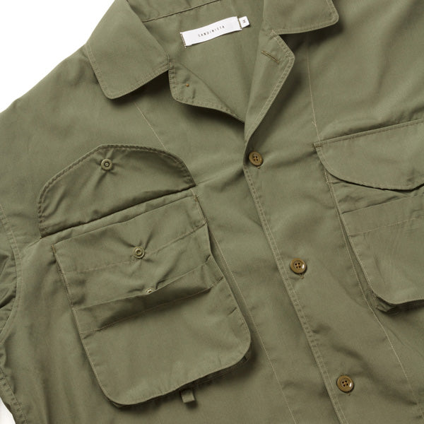 コットンブロード生地を使用した、胸ポケットに特徴のあるシャツジャケット。