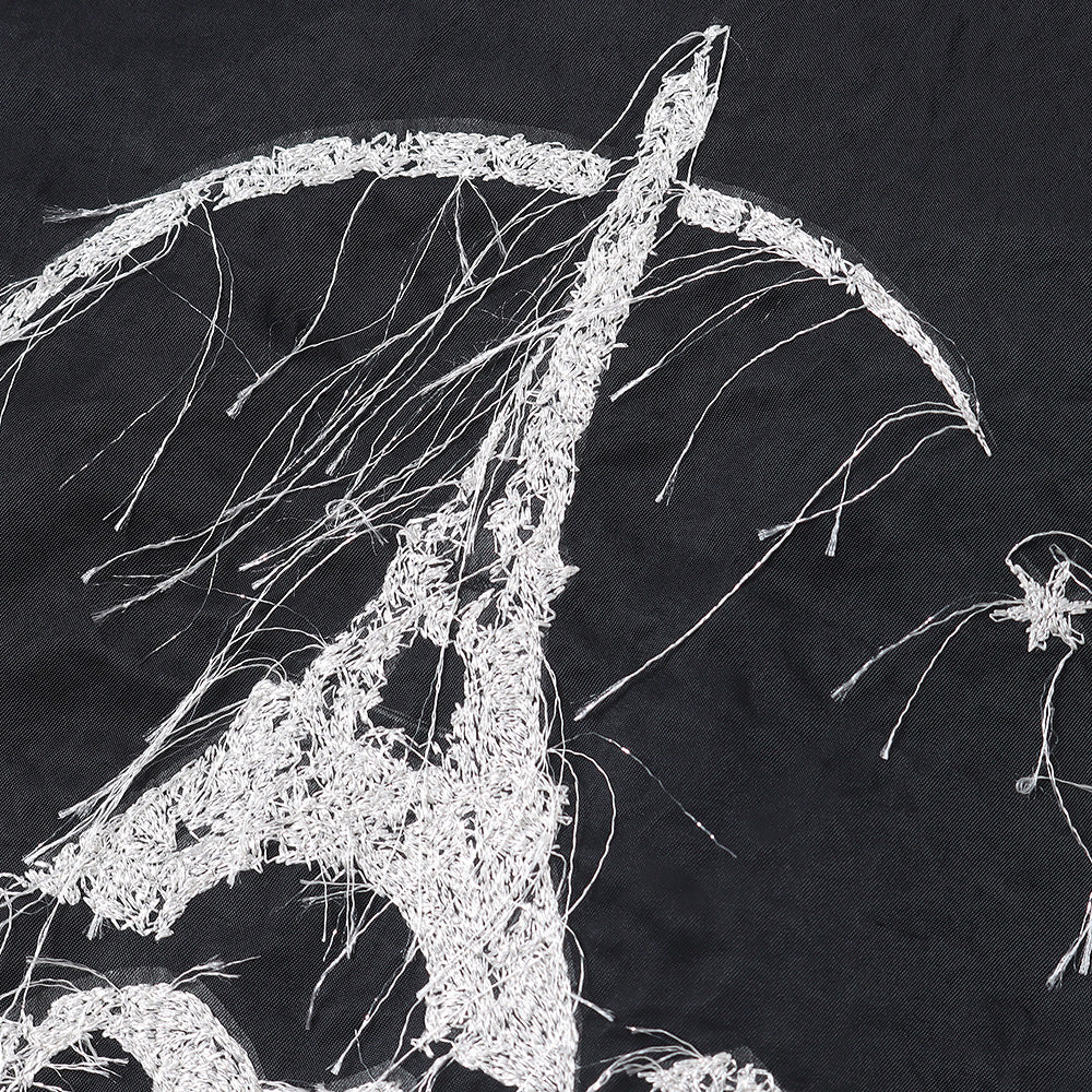 ダメージが加わって解れたようなテクニックで刺繍をしています。